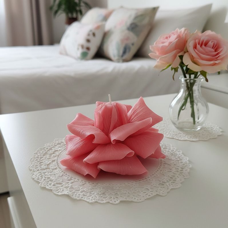 Эта ароматическая свеча "Французская роза" создана, чтобы дарить вдохновение и тепло. Каждый лепесток изготовлен вручную из 100% натурального пчелиного воска. Насладитесь чистым горением, нежным ароматом и уникальным дизайном, который украсит любой интерьер. Зажгите ее, и пусть ваш дом наполнится теплом и романтикой цветущего сада. Идеальный подарок для себя или близких И просто супер вариант на 8 Марта!