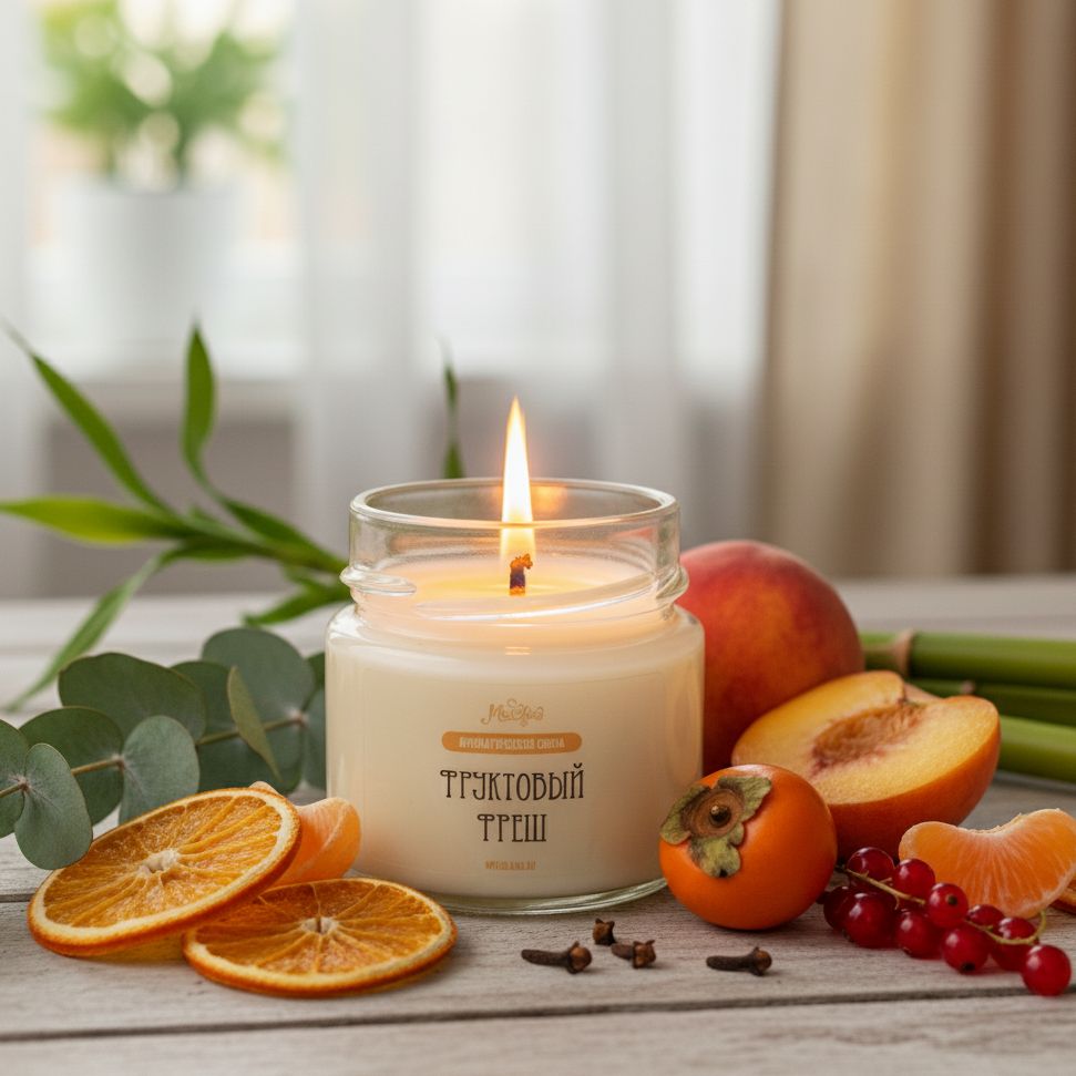 Ароматическая свеча "ФРУКТОВЫЙ ФРЕШ" из натурального 100% соевого воска.