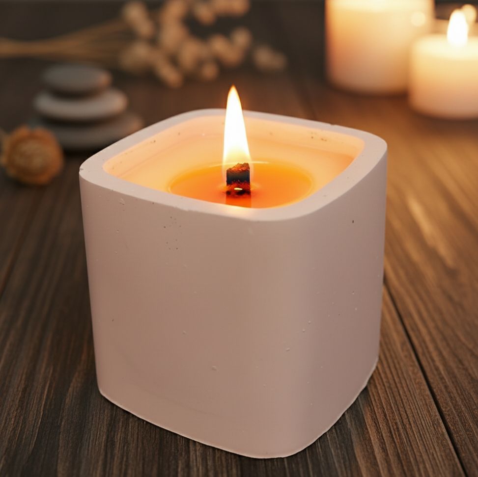 Ароматическая свеча в гипсовом кашпо. Натуральный 100% соевый воск.