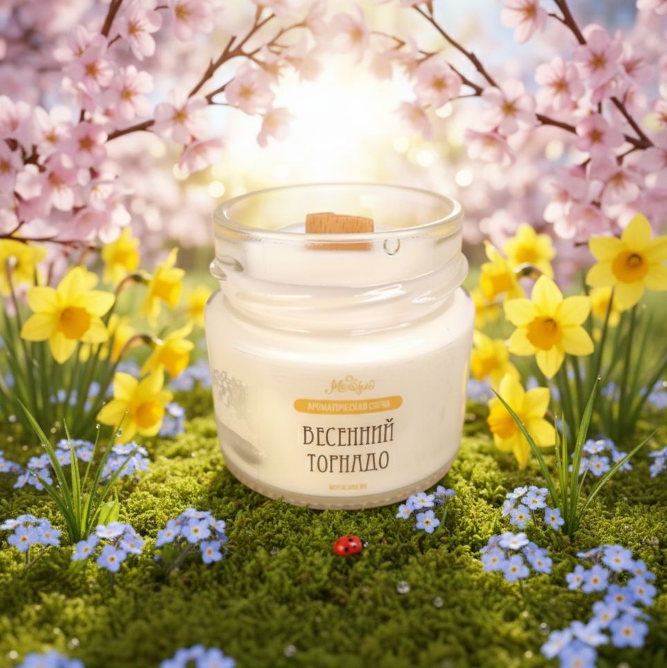 Ароматическая свеча "ВЕСЕННИЙ ТОРНАДО" из натурального 100% соевого воска.