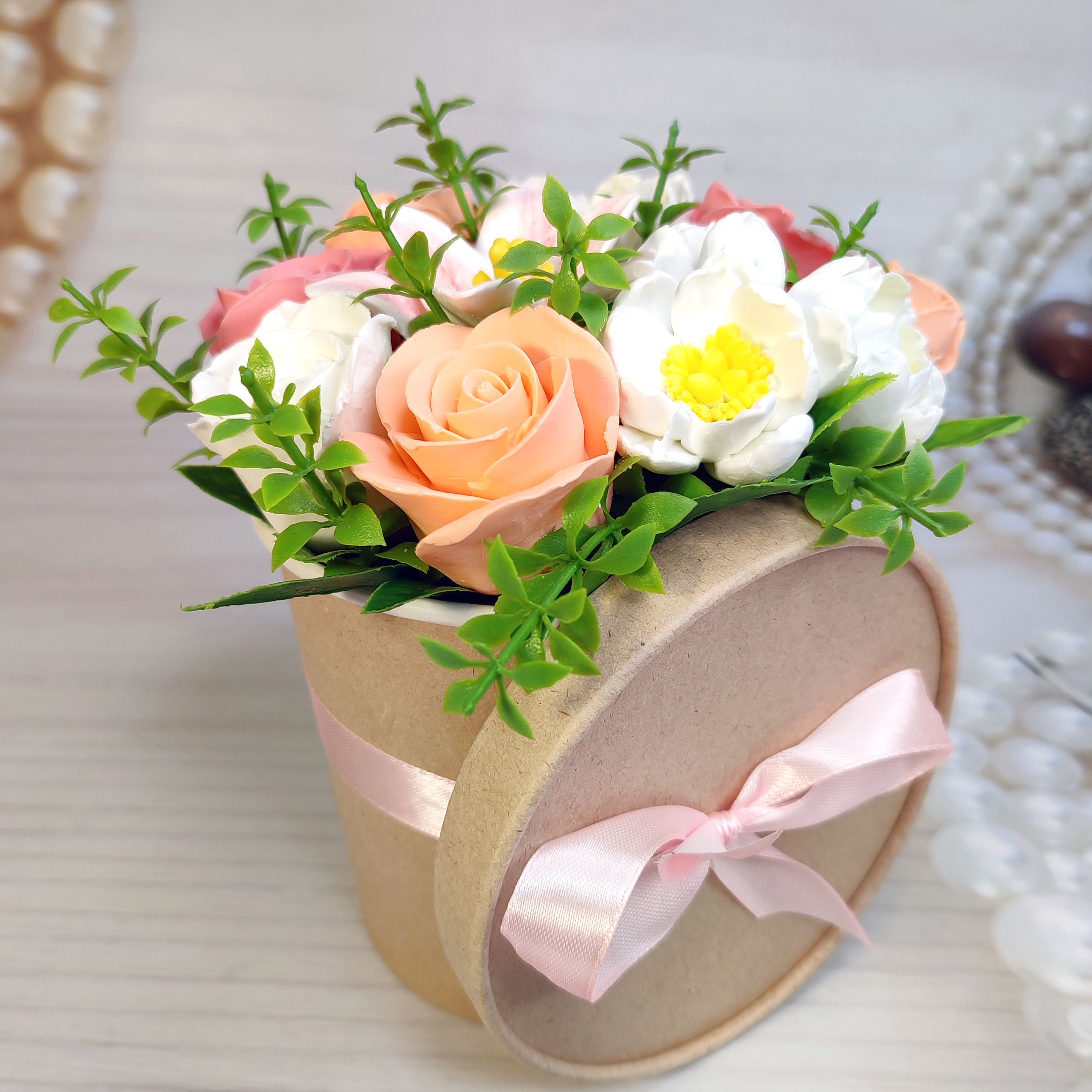 Небольшой букетик из мыльных цветов, приятный недорогой подарок.