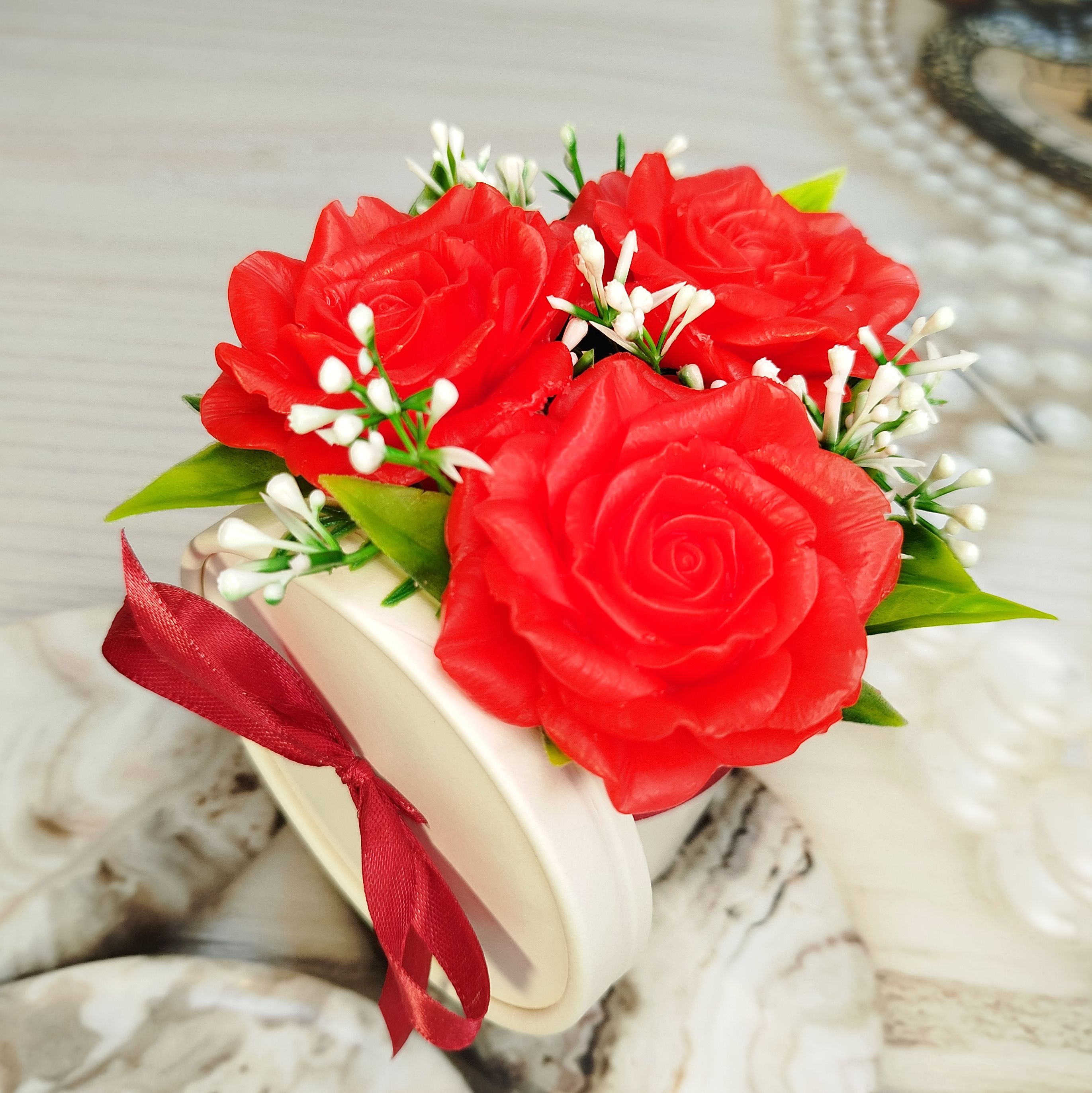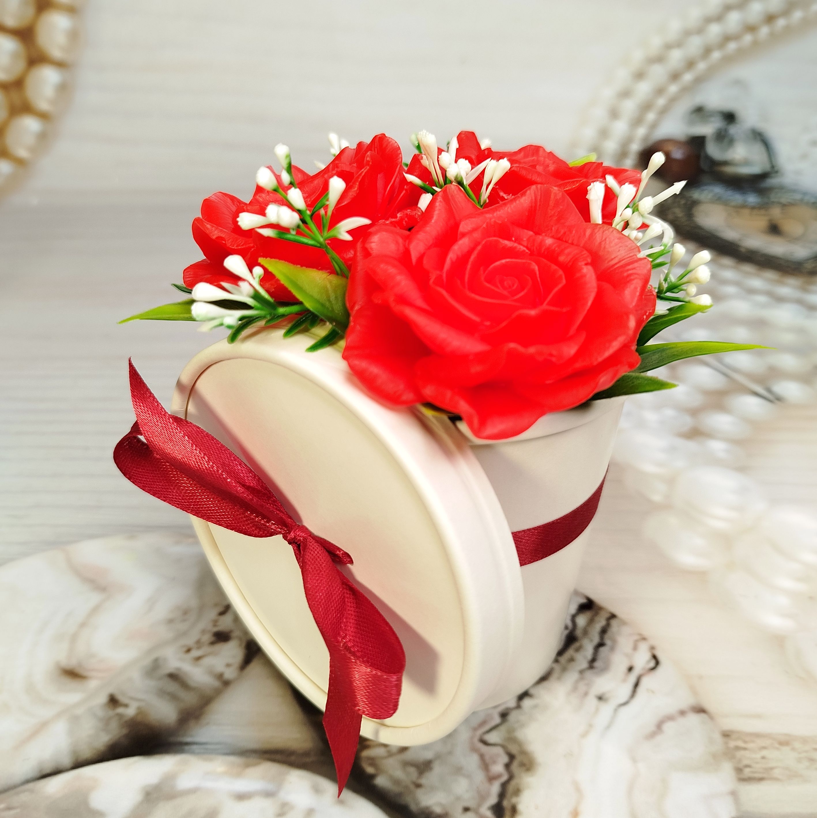 Недорогой, но от этого не менее красивый букет из мыла ручной работы.