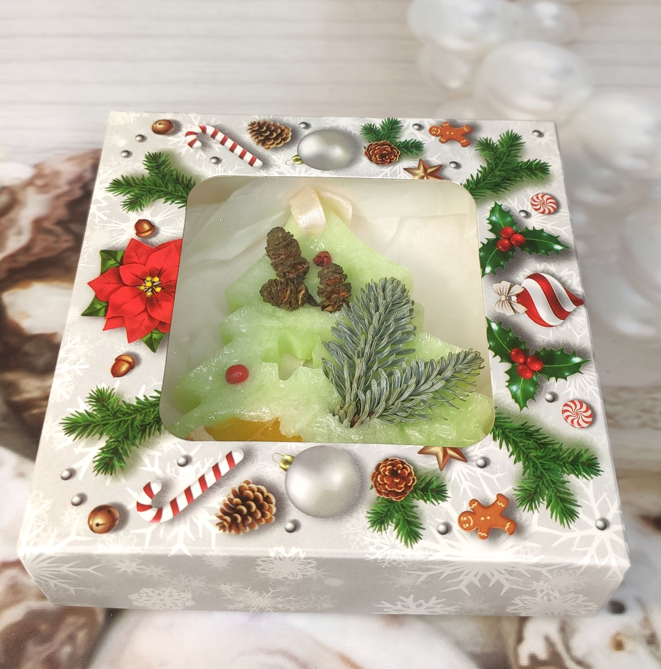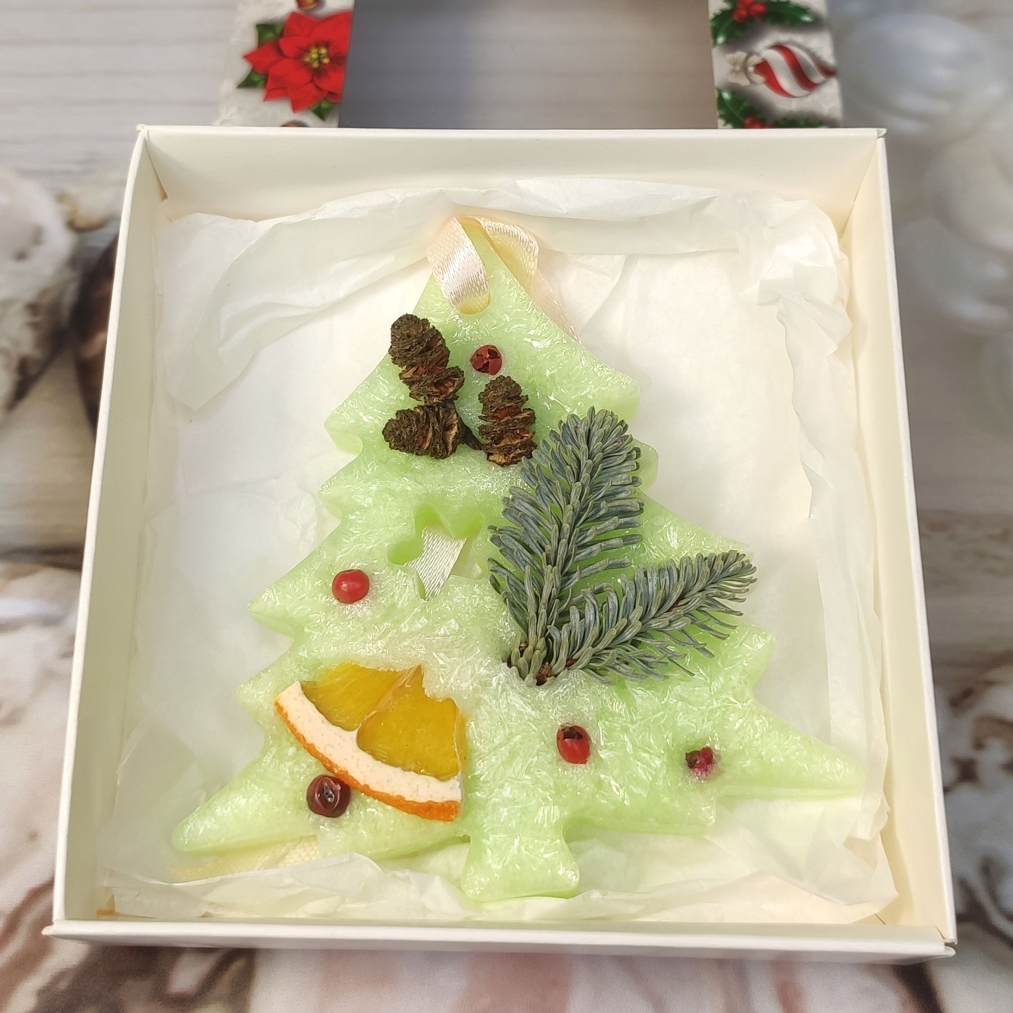 Ароматическое саше в виде ёлочки с морозным рисунком.Только самые новогодние ароматы!- мандариновое дерево;- апельсиновая гуава;- зимняя ягода;- афродизиак;- фиалка-шафран.Размер коробочки 10х10х3. 5 см.