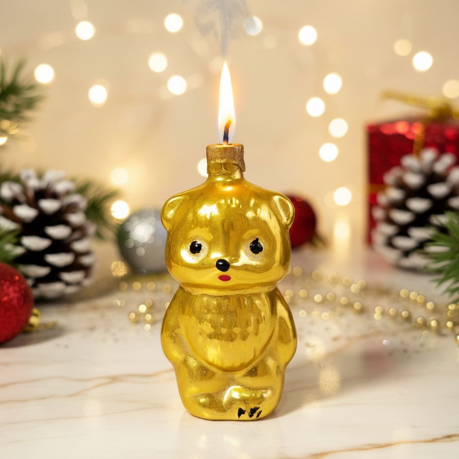 Знакомьтесь, наш золотой мишутка, который так и просится стать гвоздем программы вашего праздничного стола! Он такой милый, что даже зажигать его жалко (но мы все равно немножко сожжем, ради искусства!). Этот парень готов принести тепло и уют в ваш дом. Идеальный подарок для тех, кто любит что-то необычное, мимимишное и с искоркой! Или просто для себя, потому что вы это заслужили!