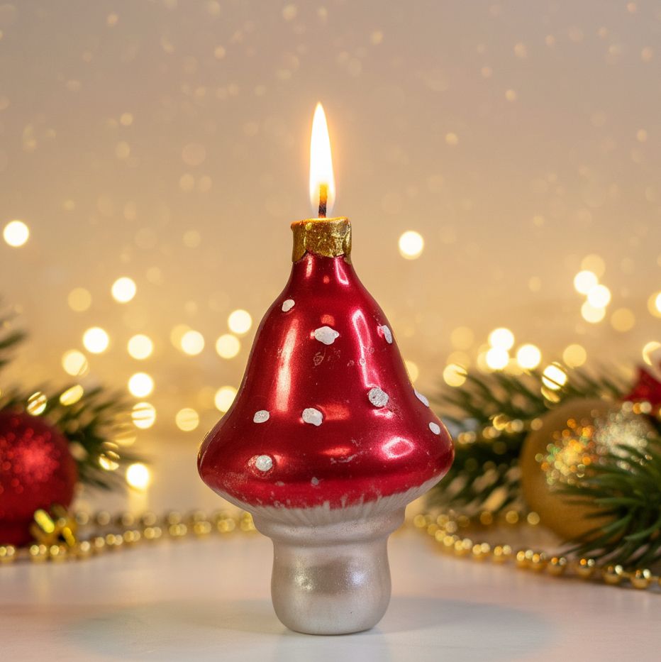 Это не просто свеча, это реинкарнация легендарной ёлочной игрушки СССР! Помните, как такой мухомор висел на самом видном месте? Теперь он ещё и горит!