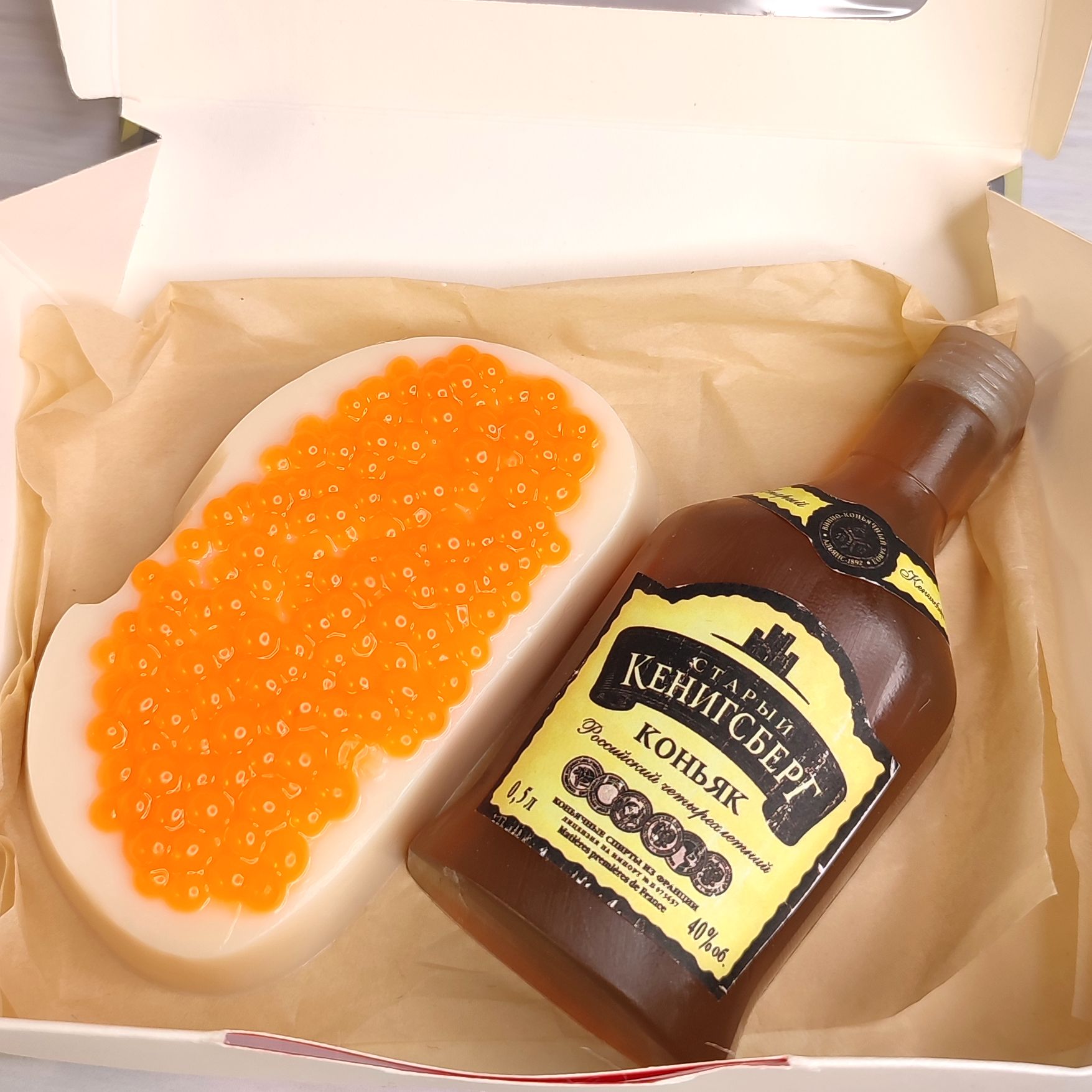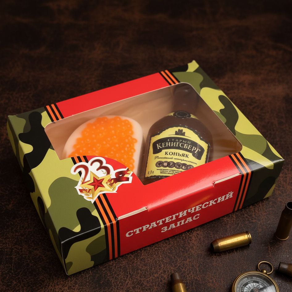 Что за праздник без коньяка и бутерброда с икрой, пусть даже из мыла?С ДНЁМ ЗАЩИТНИКА ОТЕЧЕСТВА, МУЖЧИНЫ!Набор "Стратегический запас N1"Срок изготовления от 2 до 5 дней.