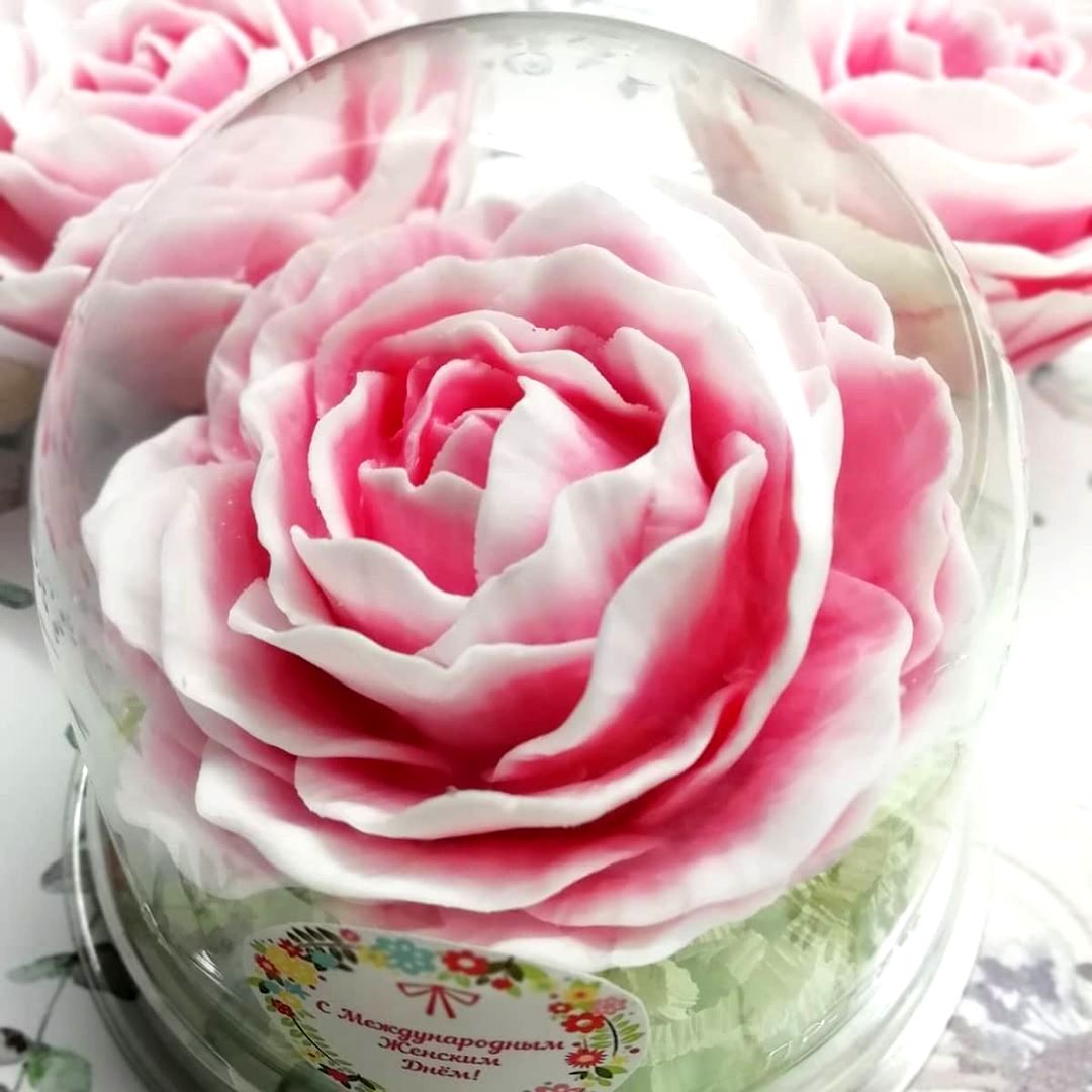 Мыльная роза упакованная в купол хороший вариант маленького подарочка для коллеги на 8 марта.Срок изготовления от 2 до 5 дней.
