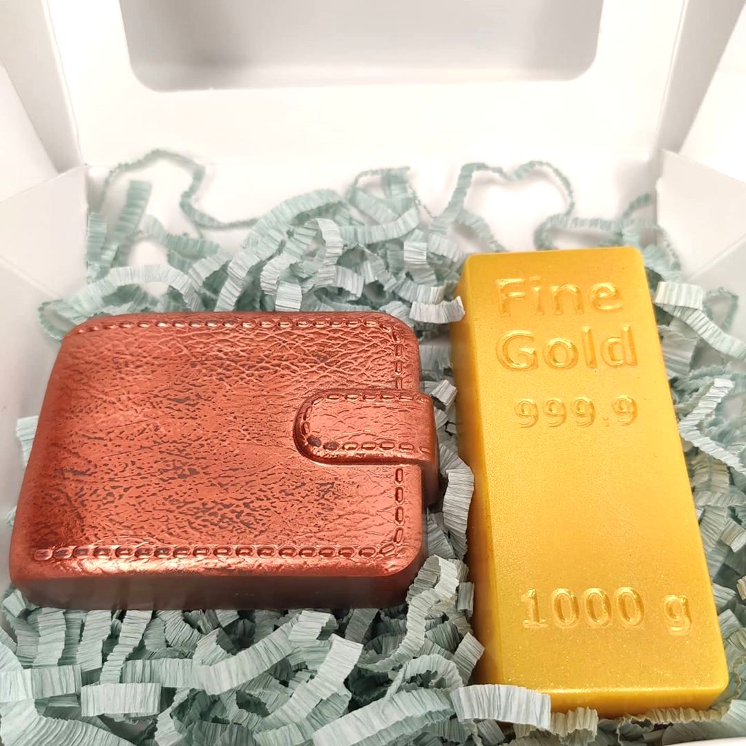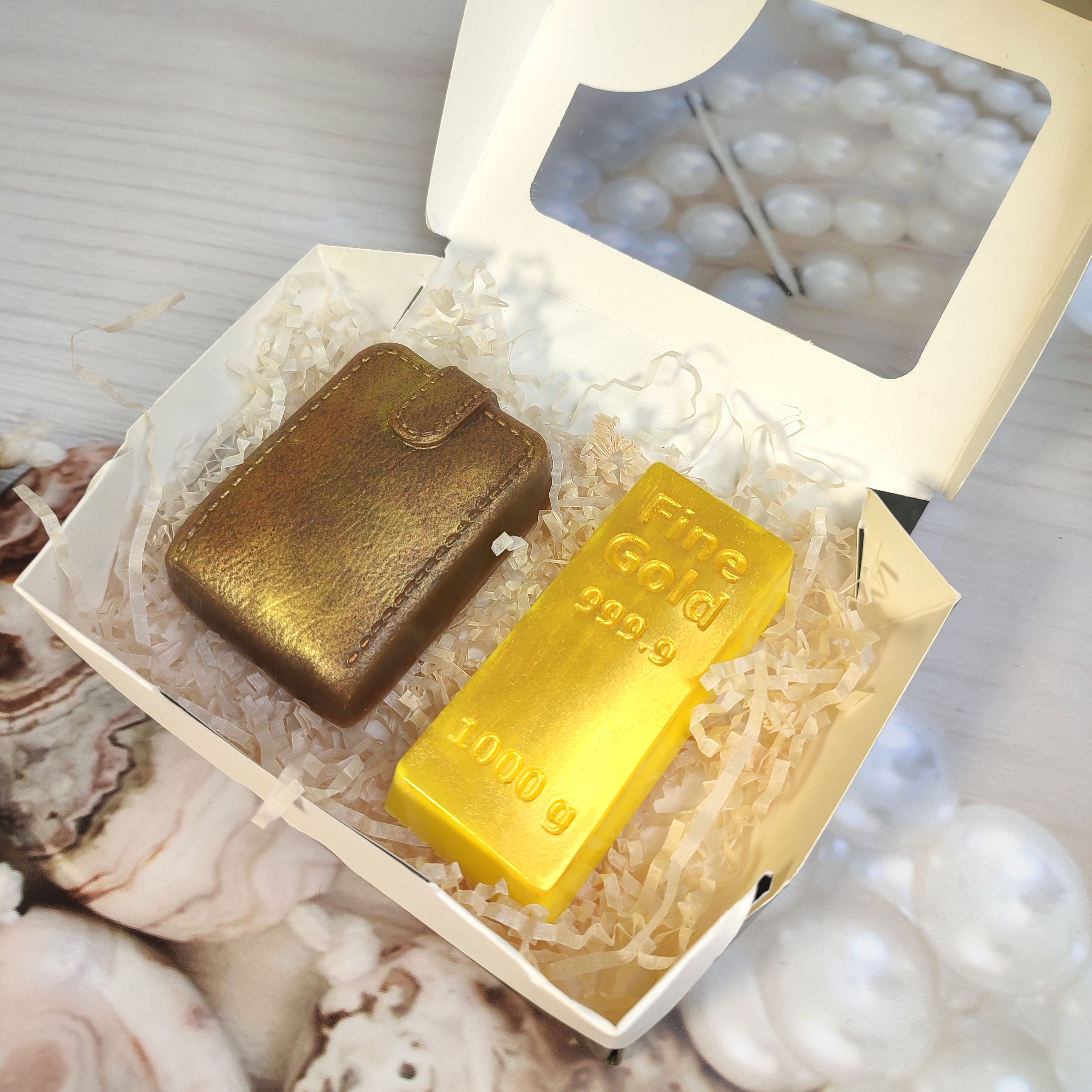 Ничего не жалко для наших мужчин... Портмоне со слитком золота.Мыло ручной работы, мужской набор.