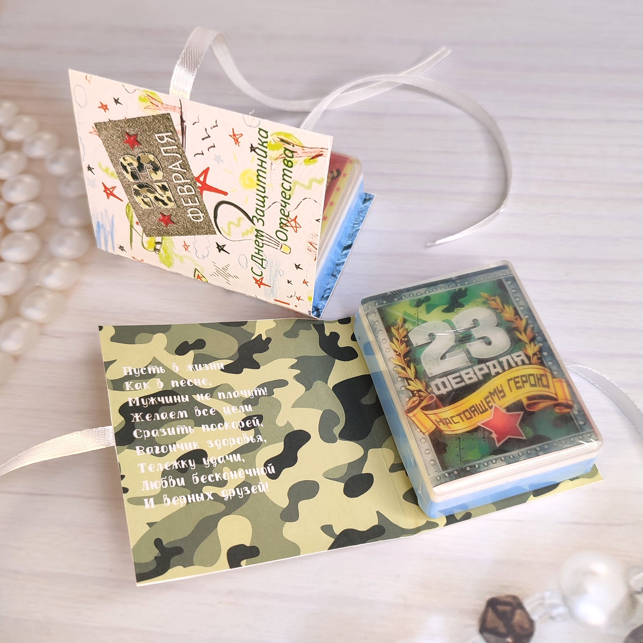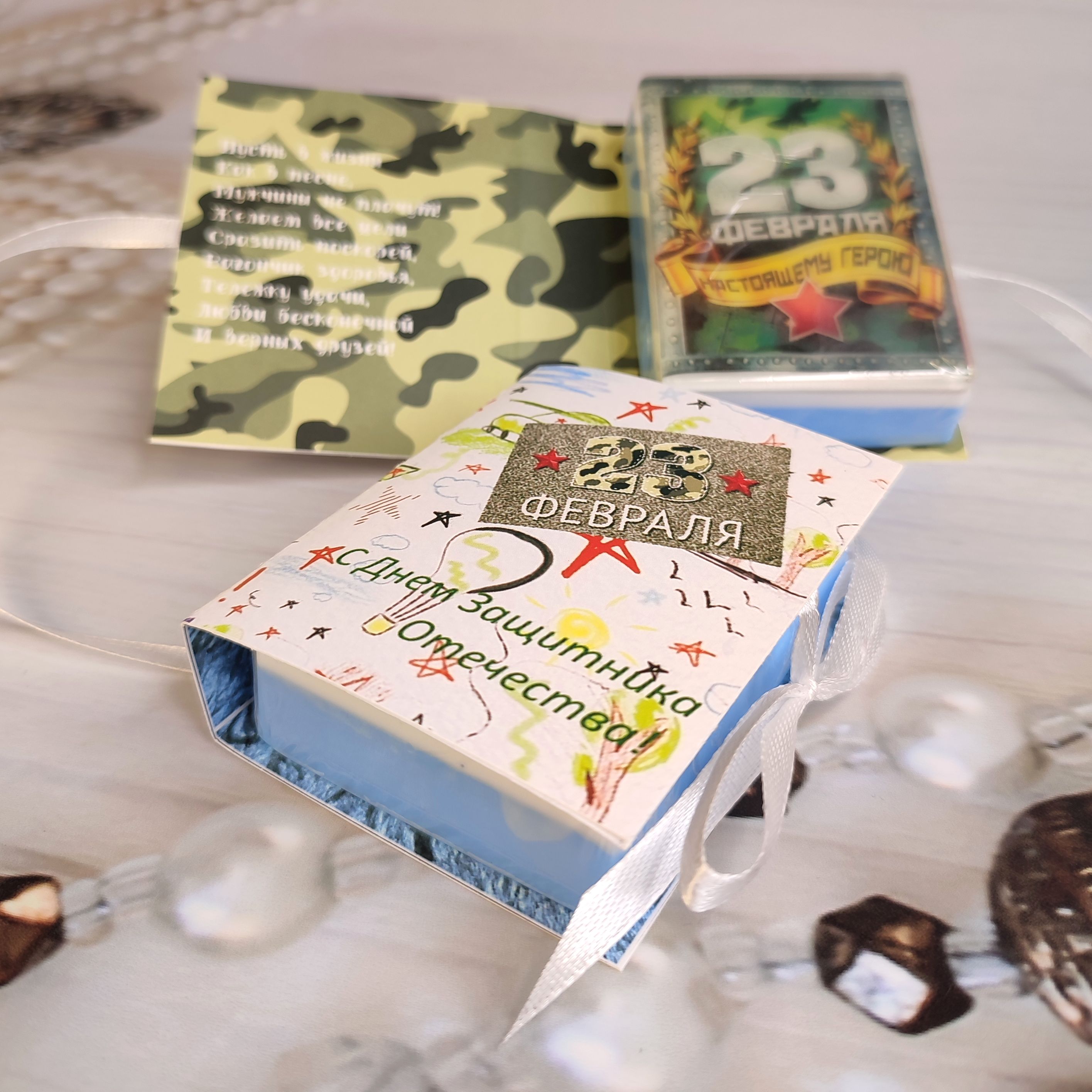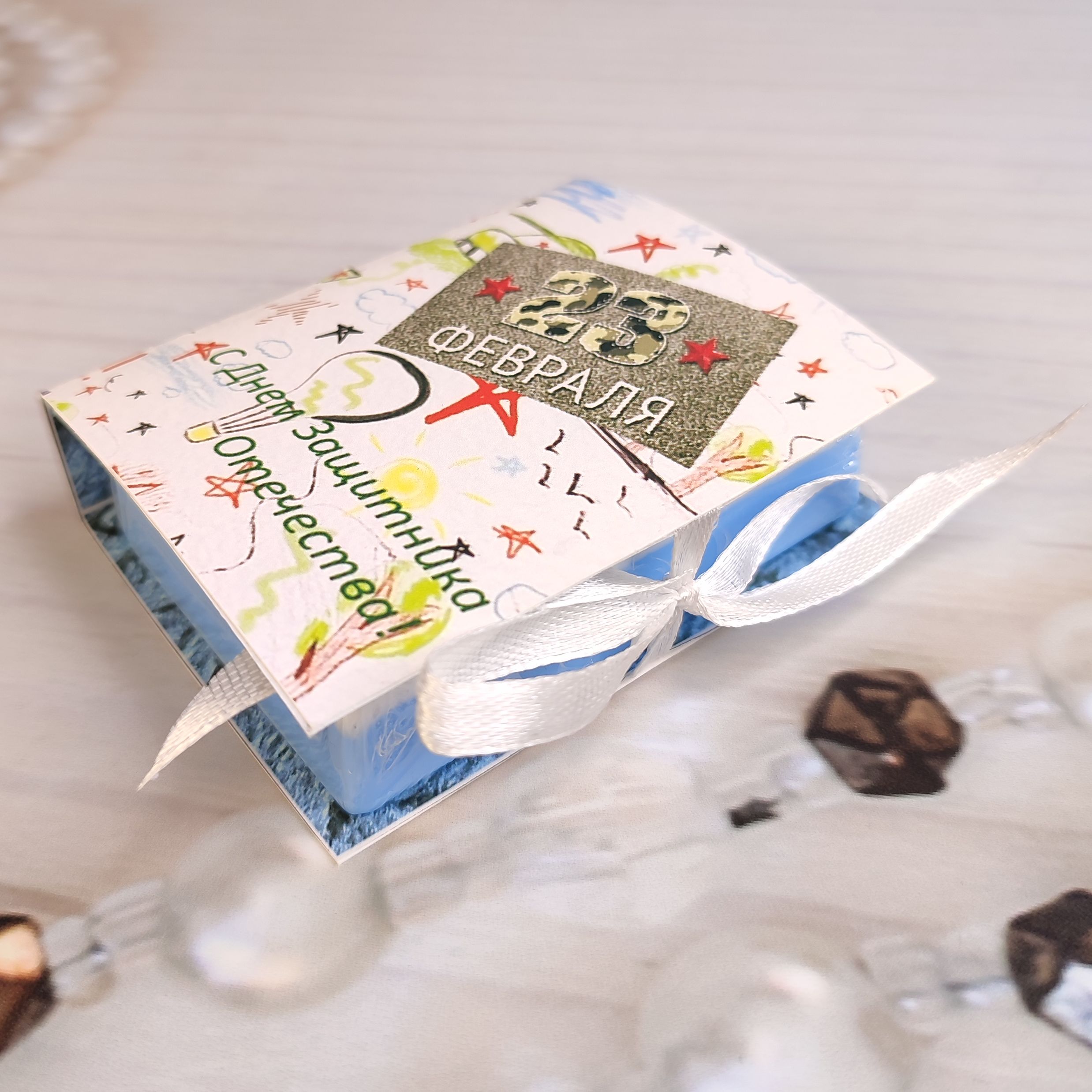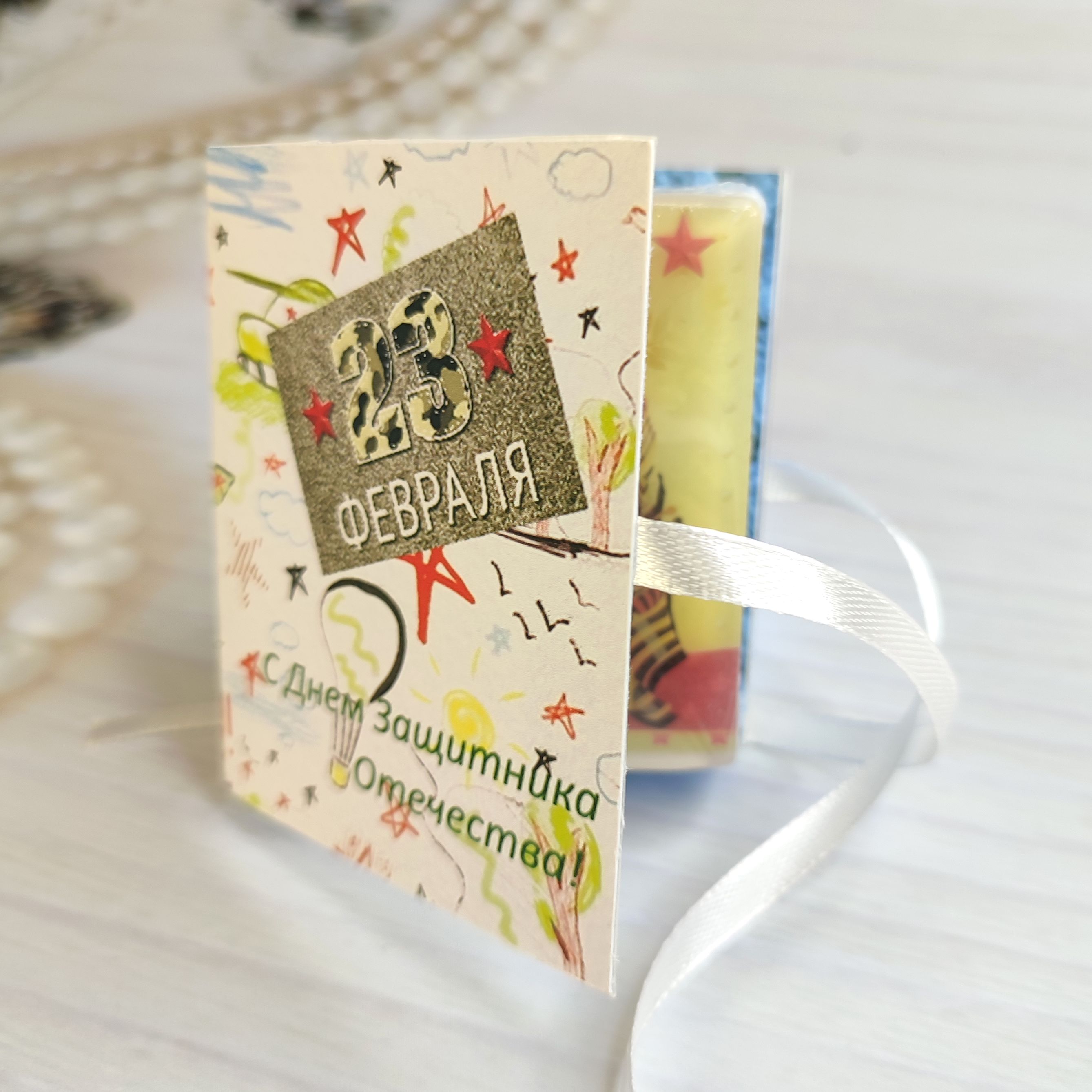 Мыло с принтом, оригинально оформленное в виде открытки.