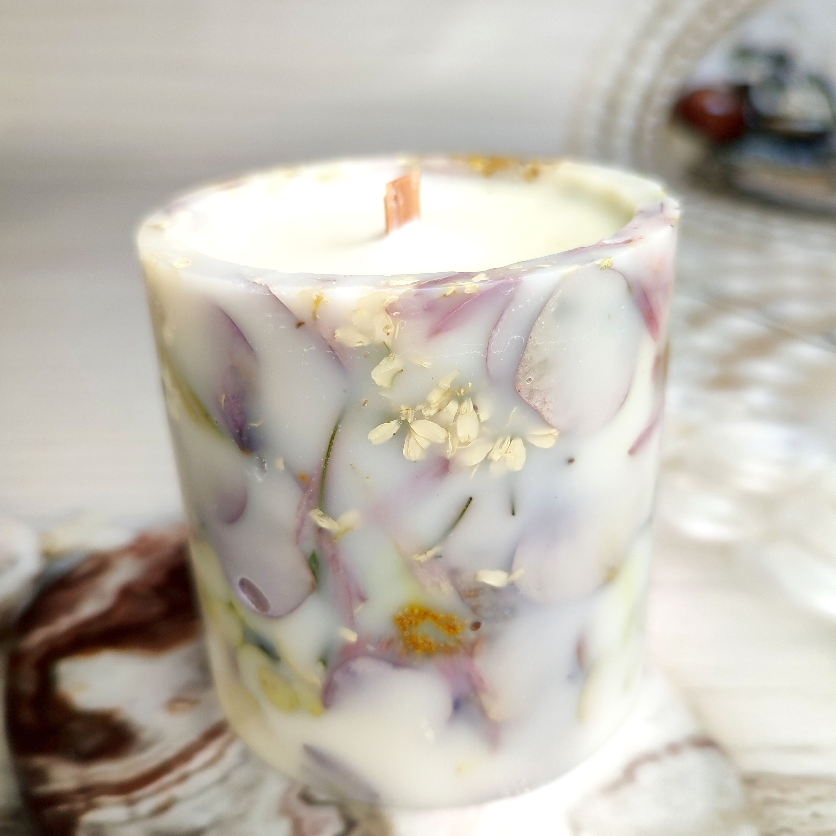 "Аметистовая гортензия" - это изысканная ботаническая аромасвеча, которая перенесет вас в мир нежности и сладости. Нежные лепестки гортензии придают свече неповторимый шарм и элегантность, а аромат... Ммммм... Насыщенные ноты спелой черной малины переплетаются с теплой, обволакивающей ванилью, создавая гармоничное и чувственное звучание. Этот аромат идеально подходит для расслабляющего вечера, романтического ужина или просто для того, чтобы наполнить ваш дом ощущением комфорта и роскоши.