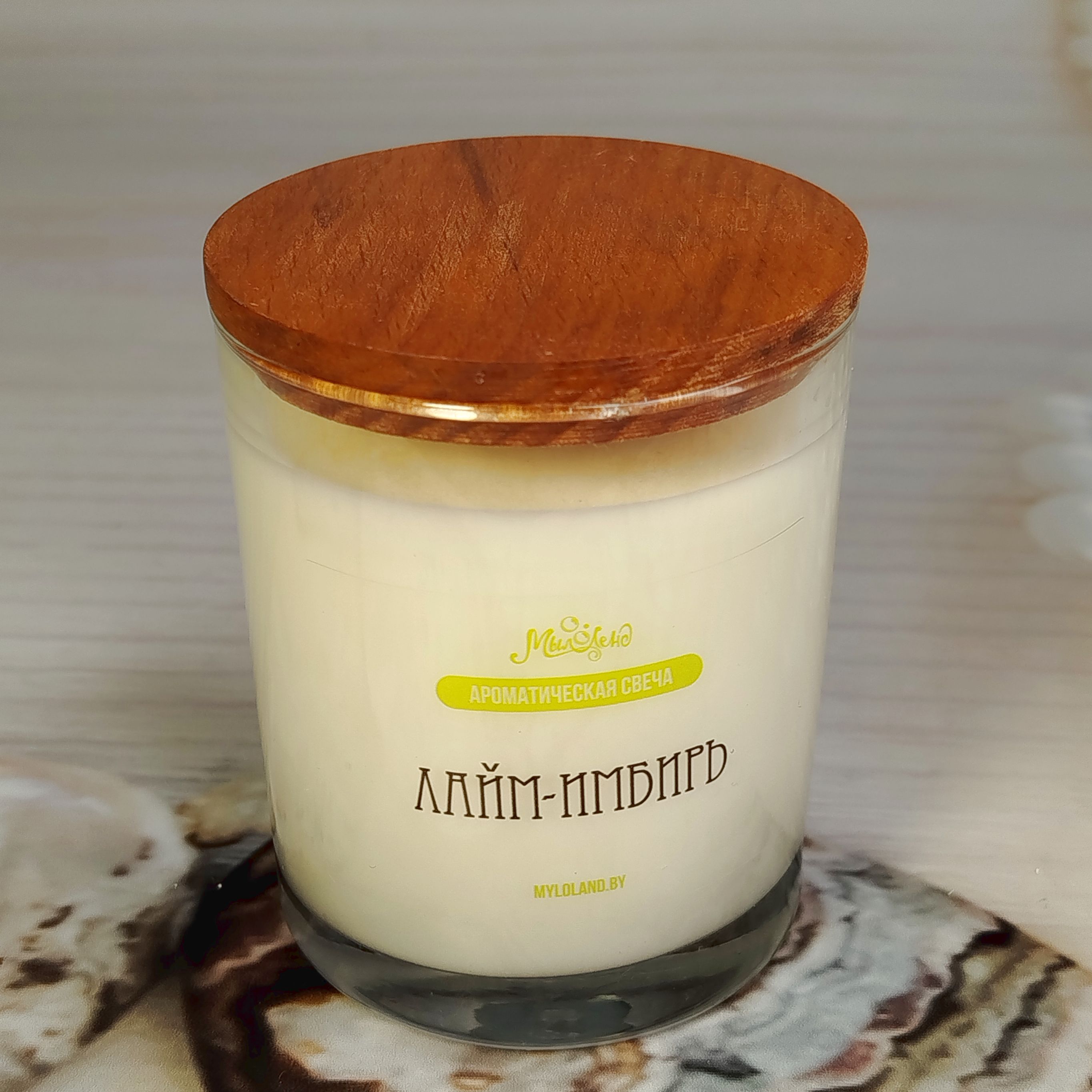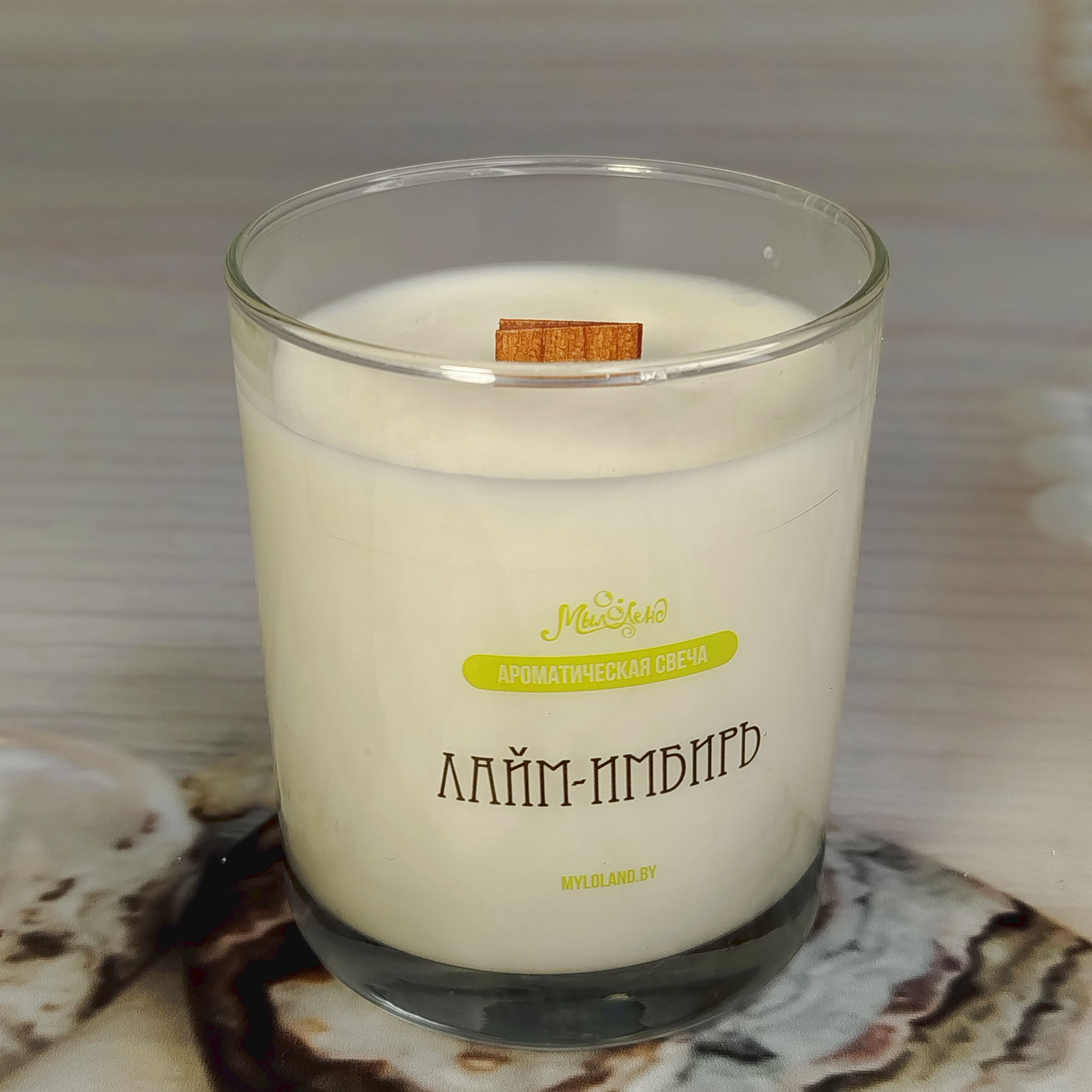 Ароматическая свеча "ЛАЙМ-ИМБИРЬ" из натурального 100% соевого воска.