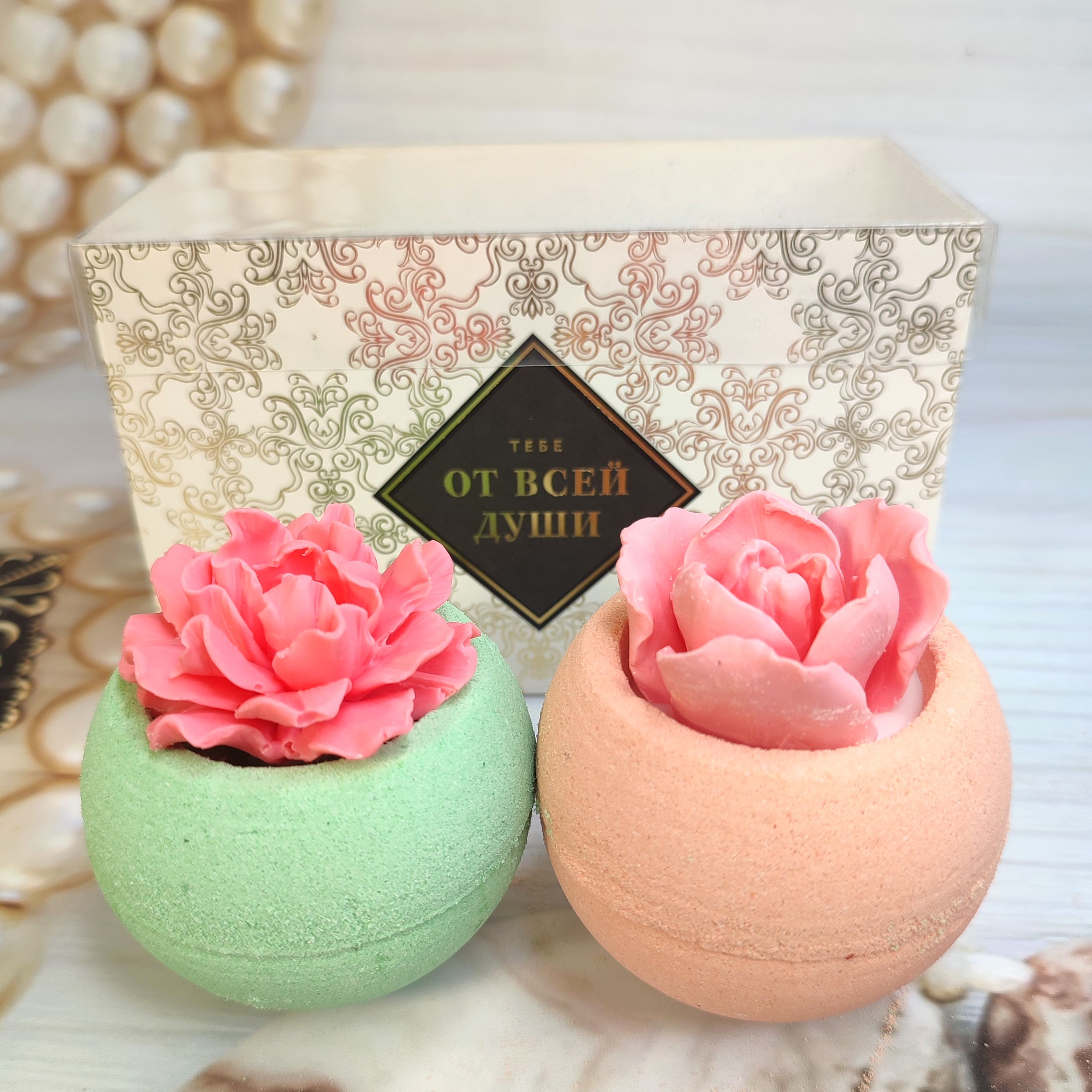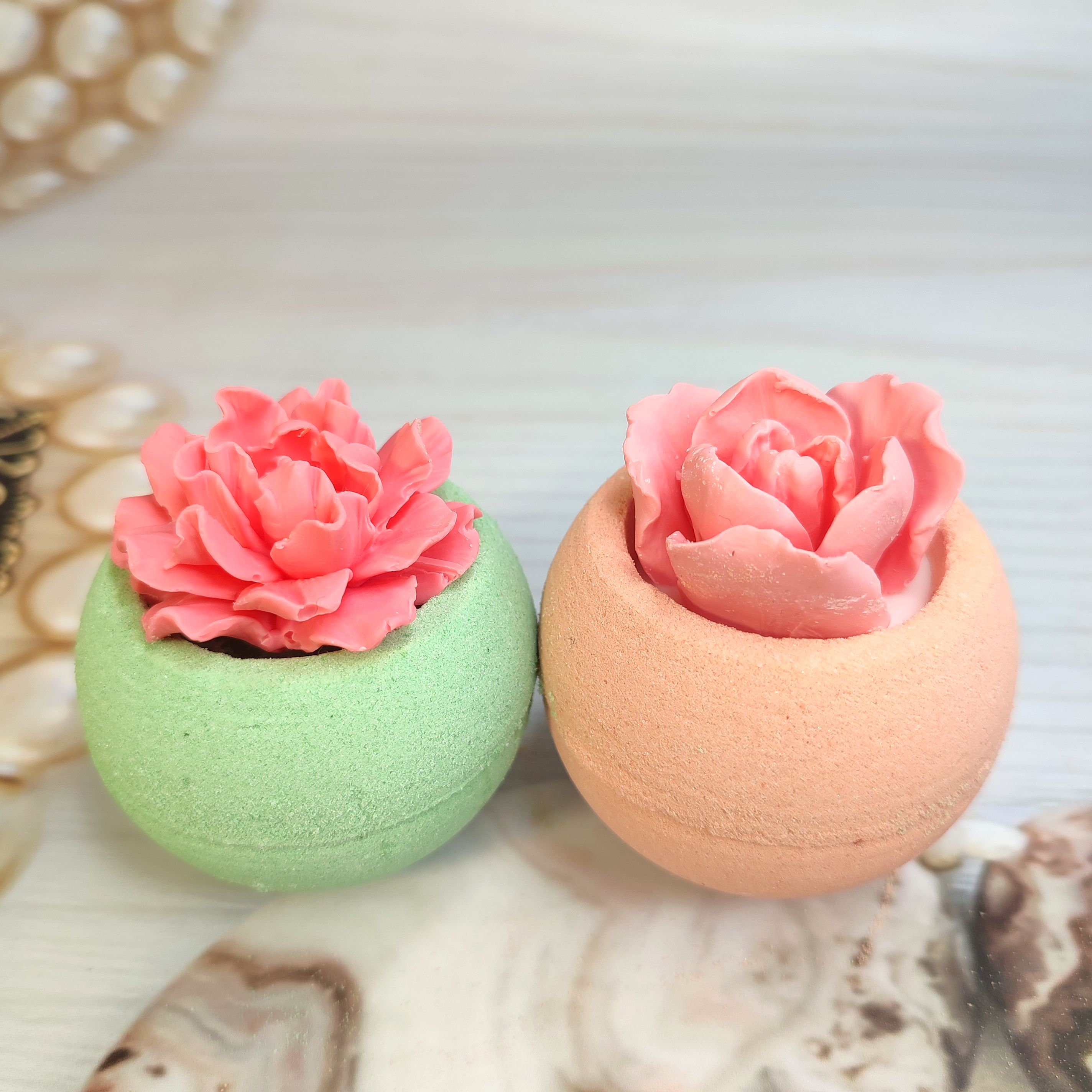 Набор из двух бомбочек. Одна с мыльным тюльпаном, вторая с гранатом.