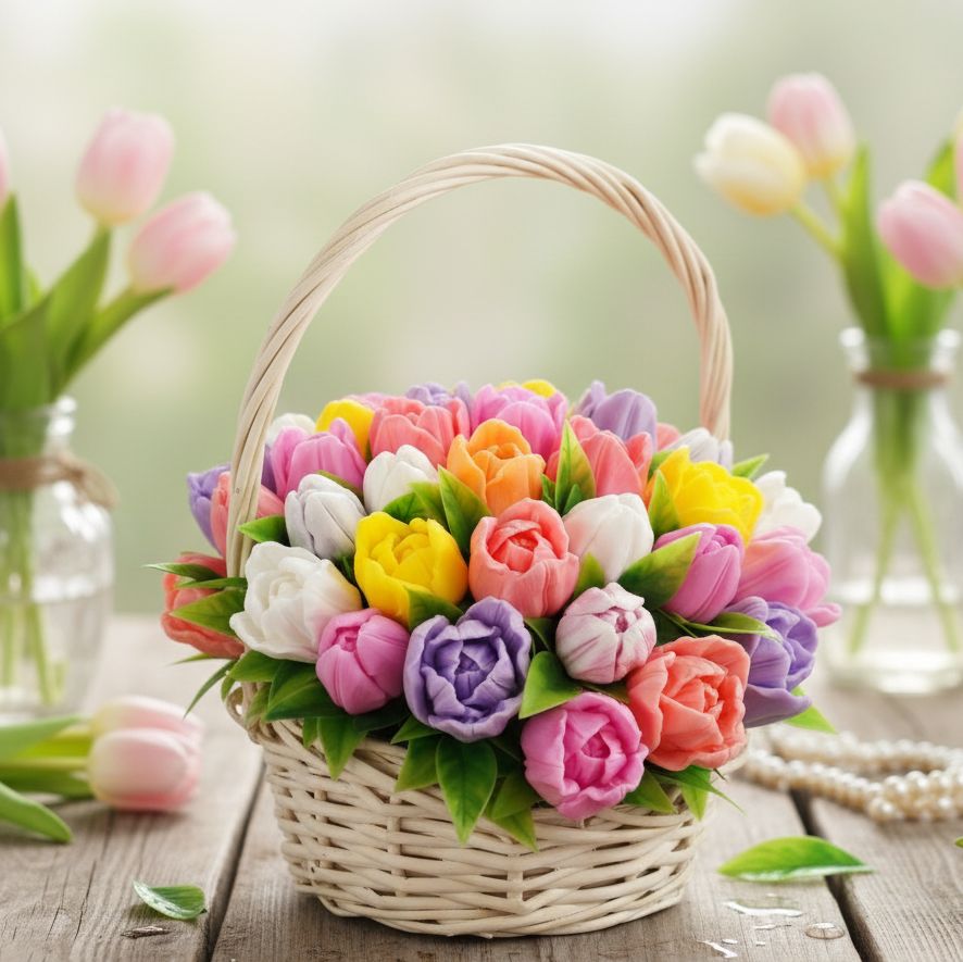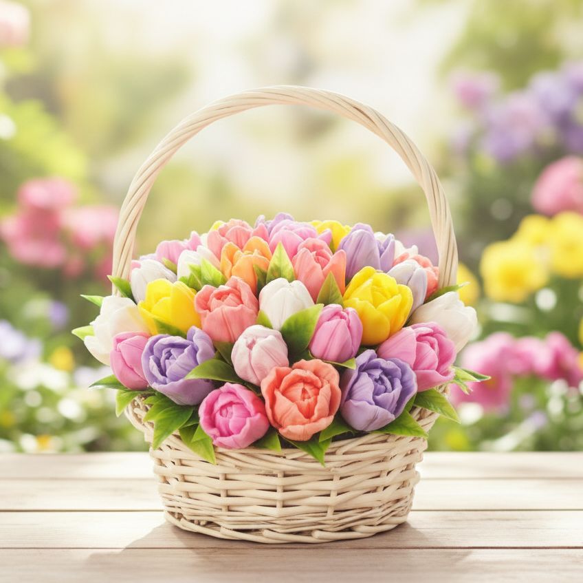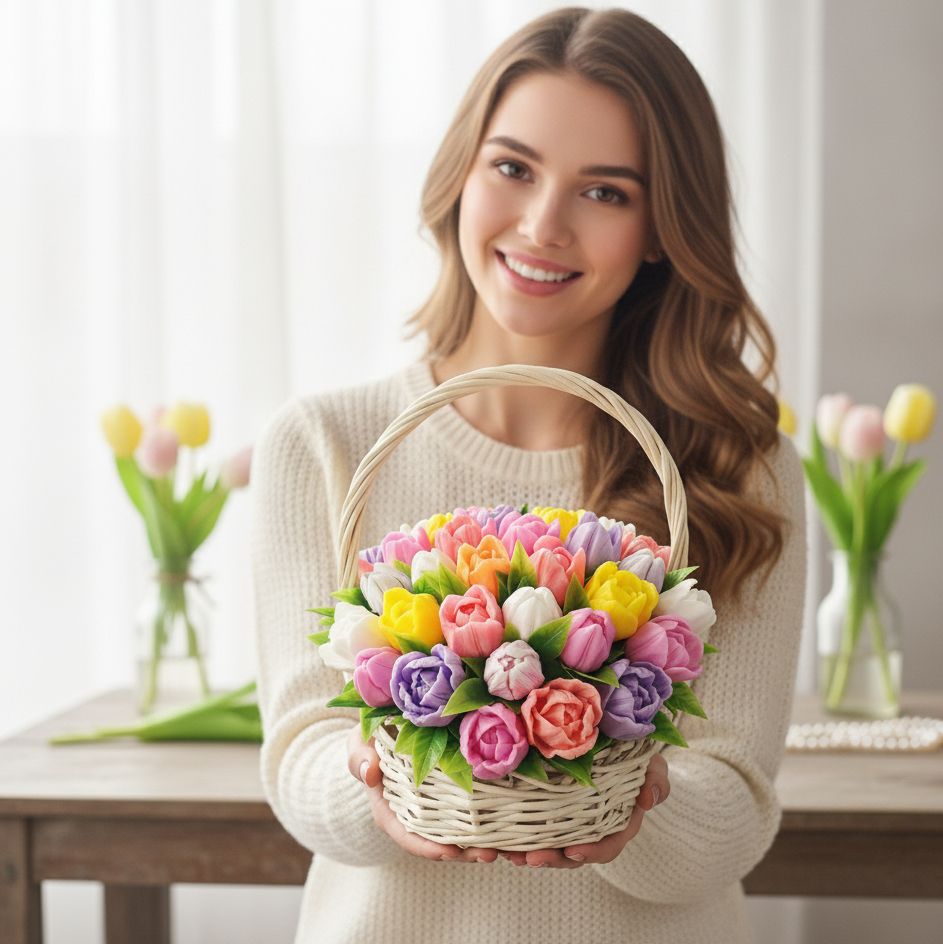 Где самые красивые поля тюльпанов? Конечно в Нидерландах! И пусть не в Амстердаме, а в основном в других провинциях, но мне кажется, что именно это название передаёт дух голландской весны :) Яркие и разноцветные тюльпаны, собранные в объемную композицию, создают ощущение пышности и радости. Подарите себе или близким частичку цветочного рая с этим великолепным букетом. Весеннее настроение в любое время года!
