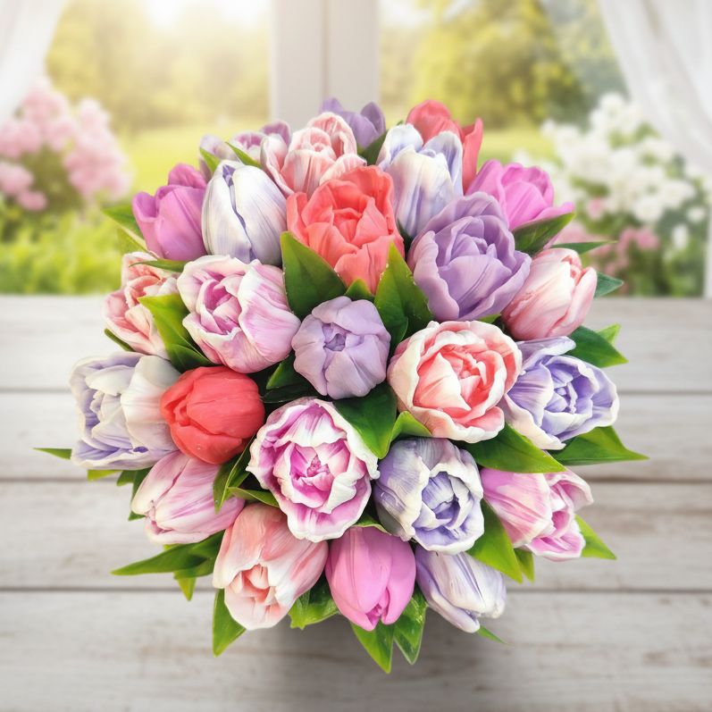 Хотите, чтобы весна поселилась в вашем доме навсегда? Эти великолепные тюльпаны, выполненные из мыла, очень реалистичны! Никакой увядающей красоты, только долговечное цветение и нежный аромат, наполняющий дом. "Королева весна" - восхитительный весенний букет! Отличный презент на 8 Марта и не только. Идеальный способ сказать "люблю", "ценю" или "спасибо" по-особенному.