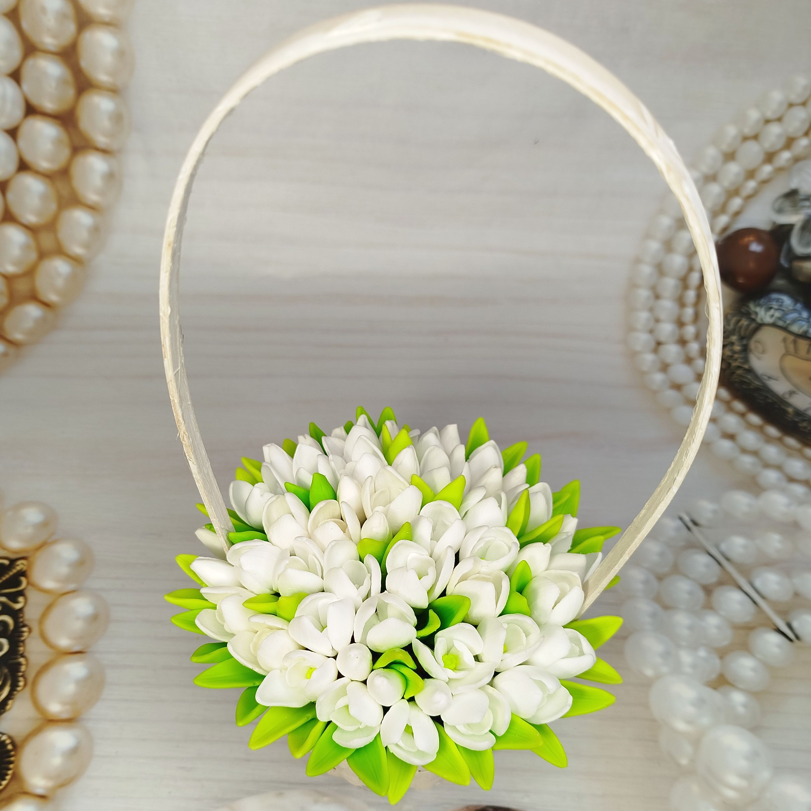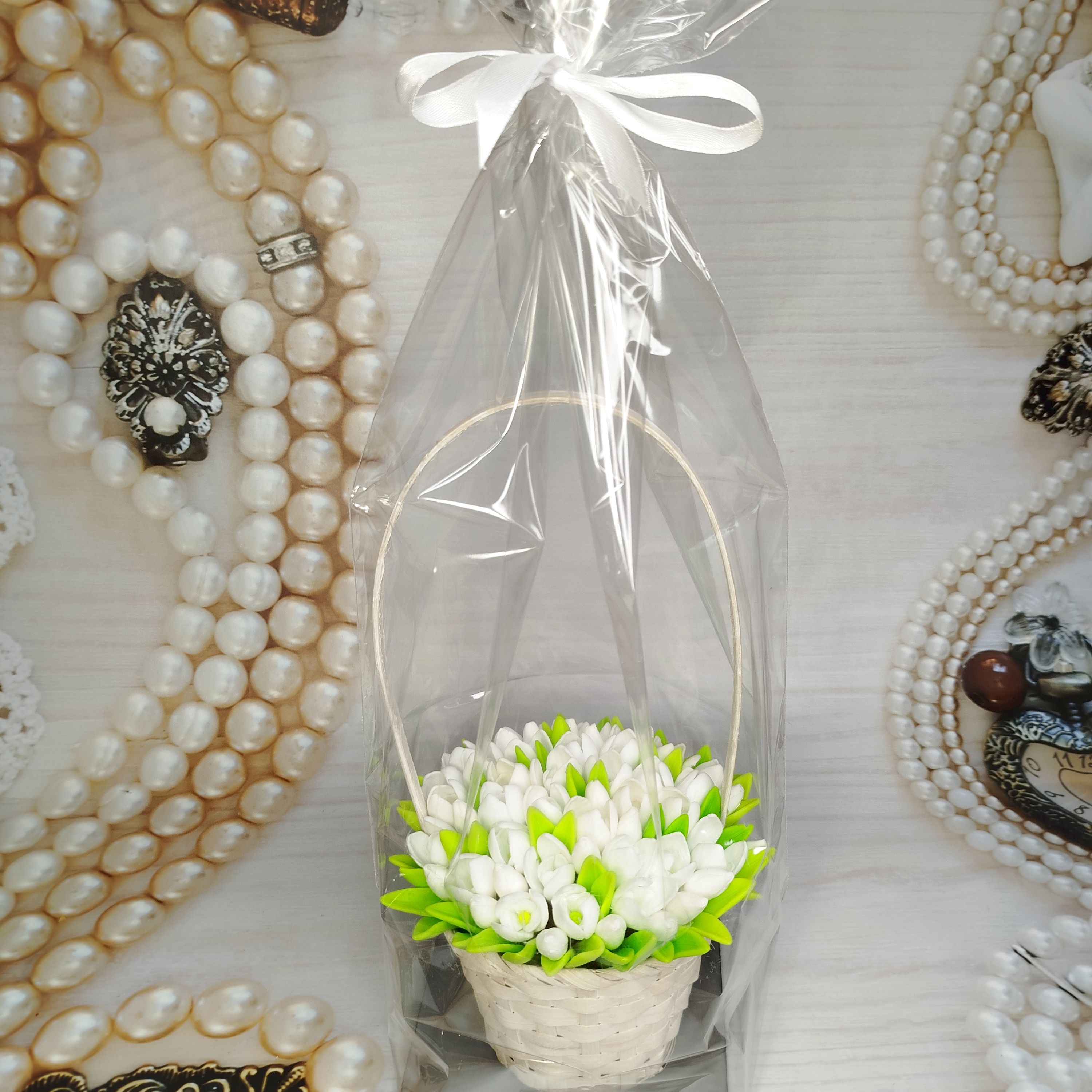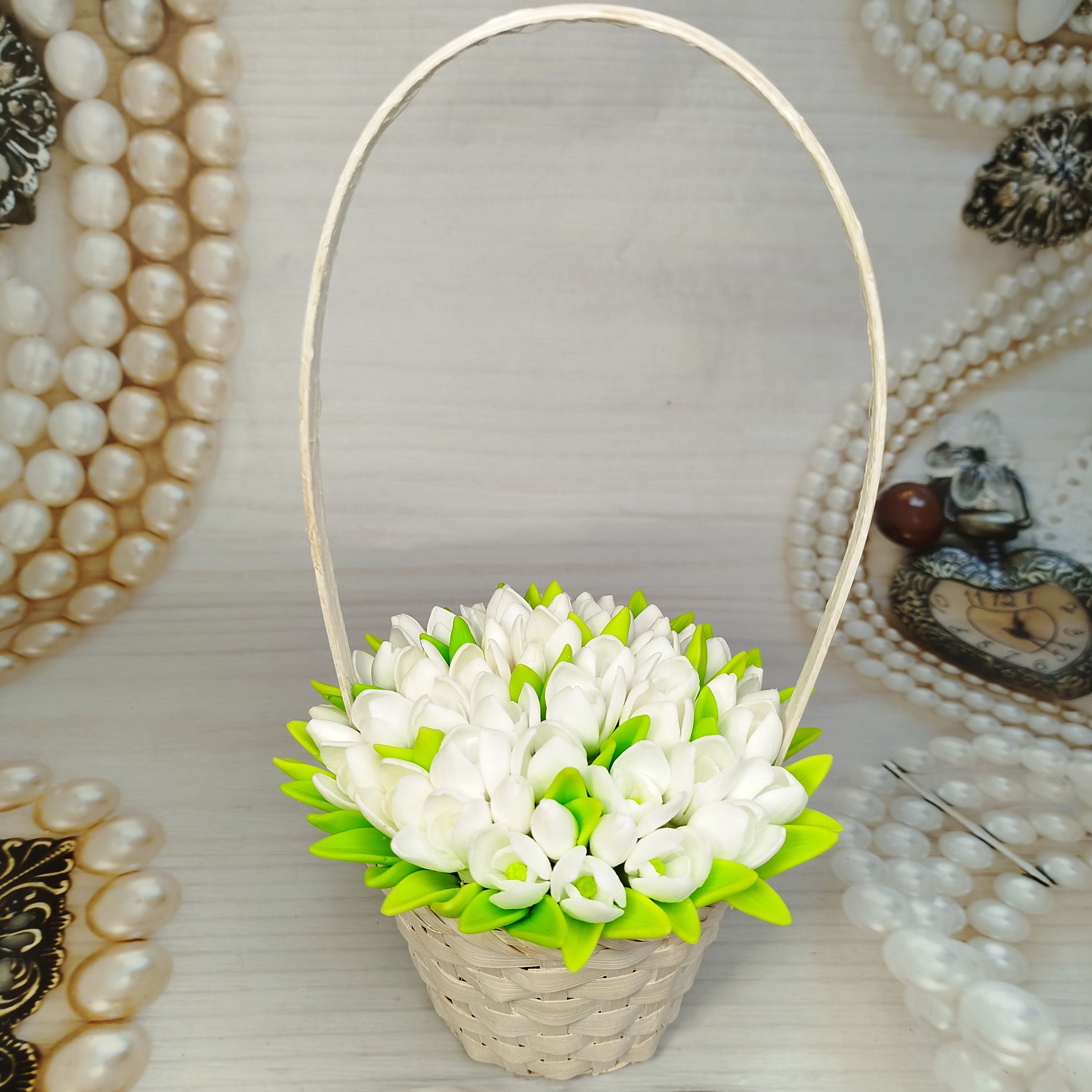 Корзинка с подснежниками. Букет изготовлен из мыла, без использования искусственной зелени.