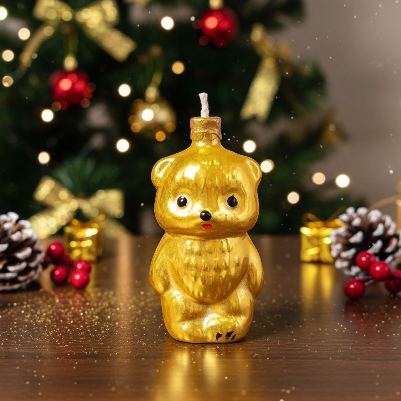 Знакомьтесь, наш золотой мишутка, который так и просится стать гвоздем программы вашего праздничного стола! Он такой милый, что даже зажигать его жалко (но мы все равно немножко сожжем, ради искусства!). Этот парень готов принести тепло и уют в ваш дом. Идеальный подарок для тех, кто любит что-то необычное, мимимишное и с искоркой! Или просто для себя, потому что вы это заслужили!