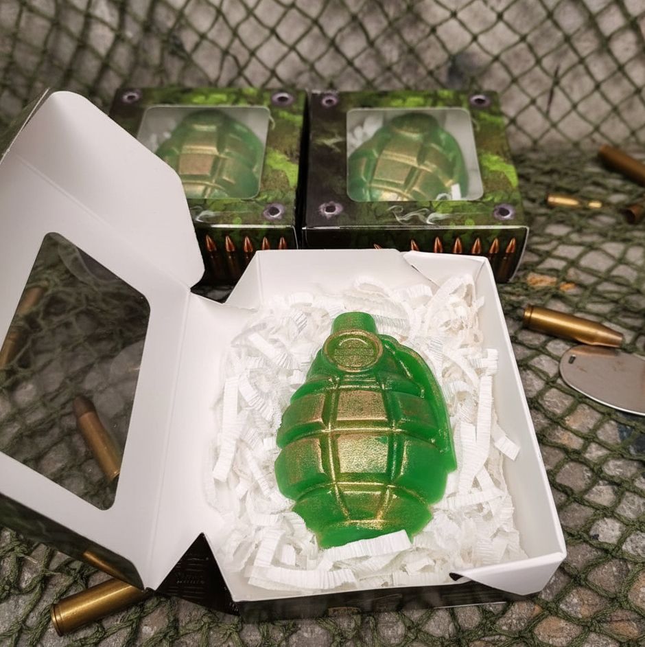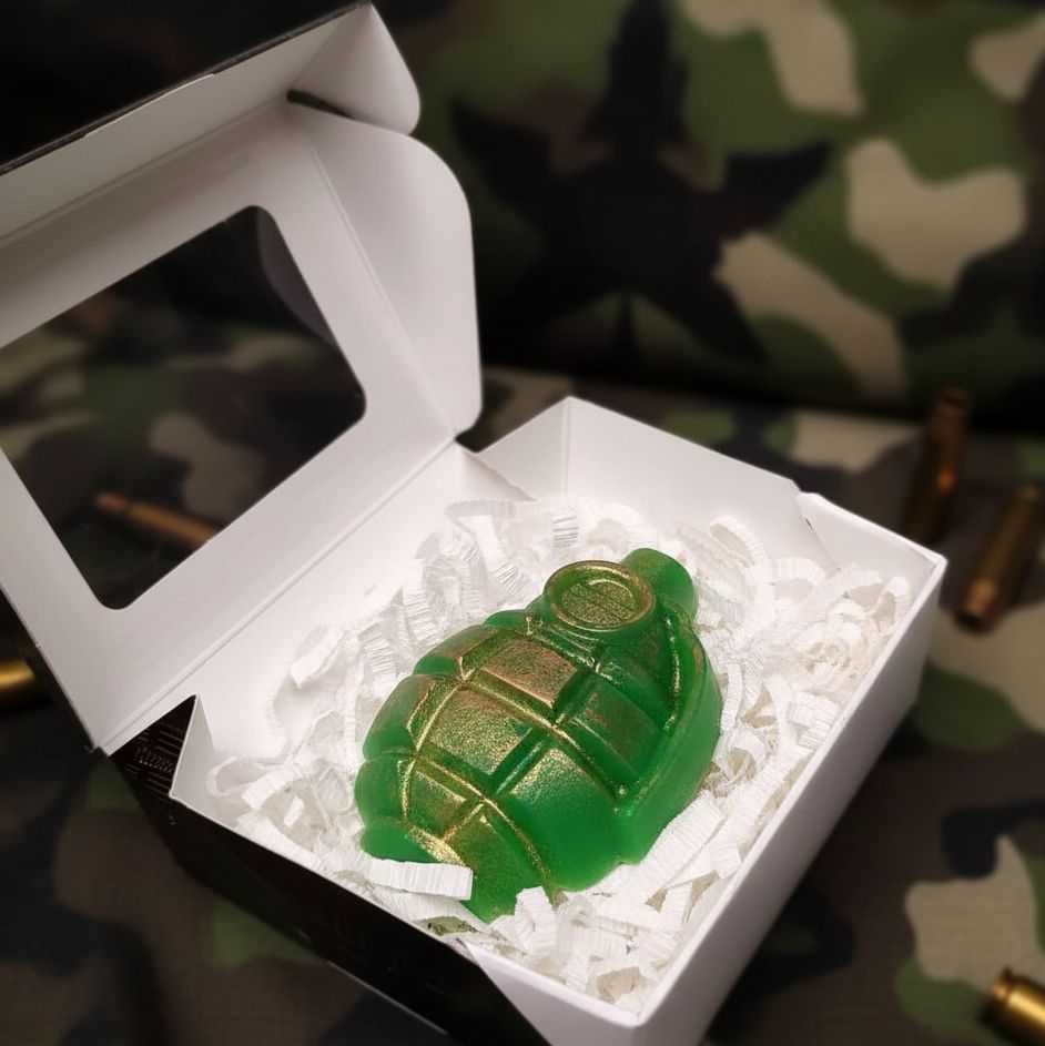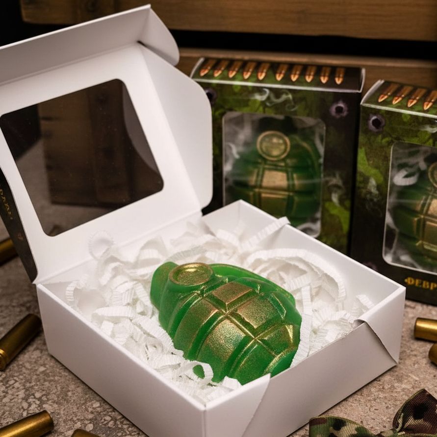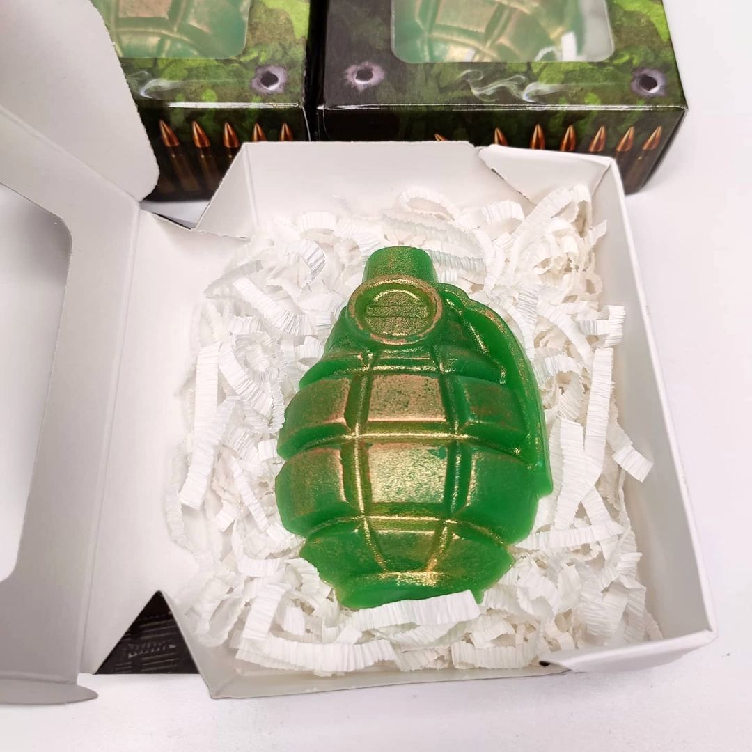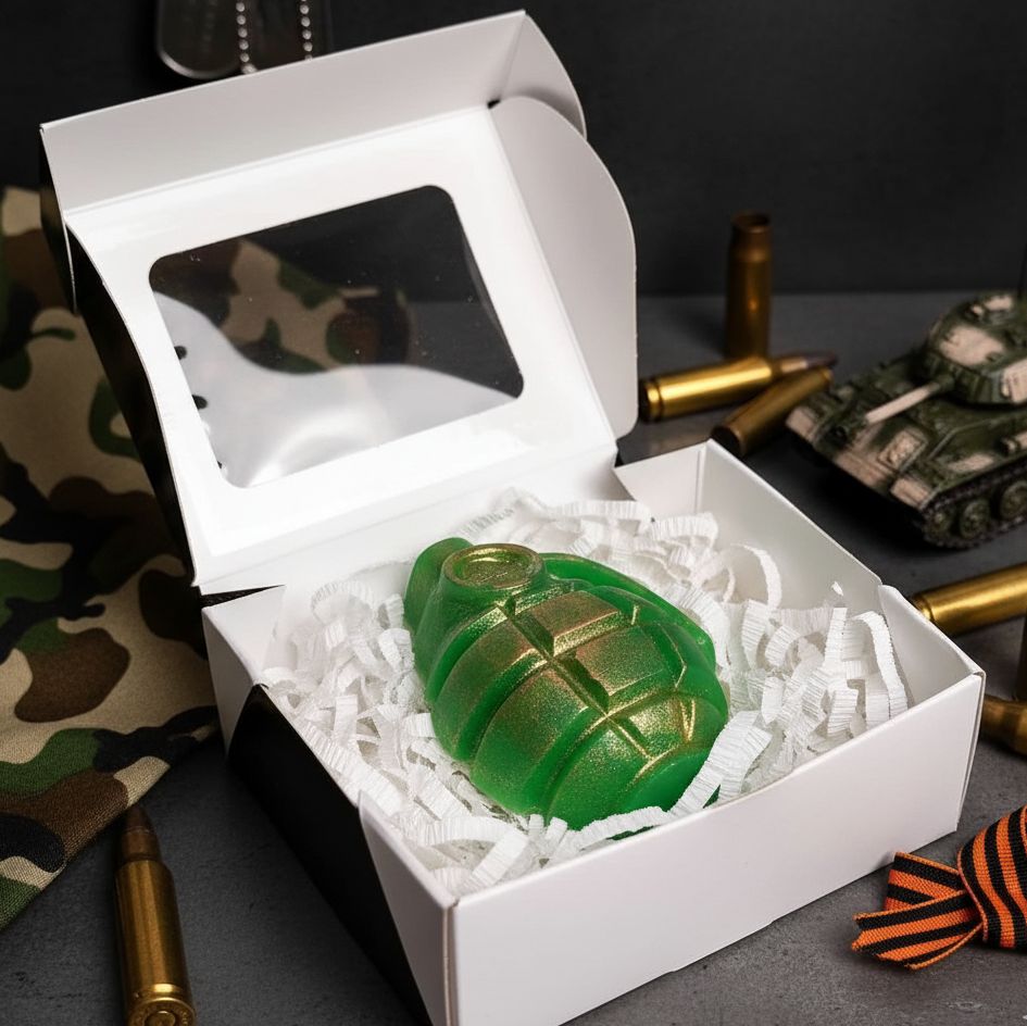 Когда нужно много и не дорого...Мыльная граната.Вес мыла 50 гр.Размер коробки 10х8х3 см.