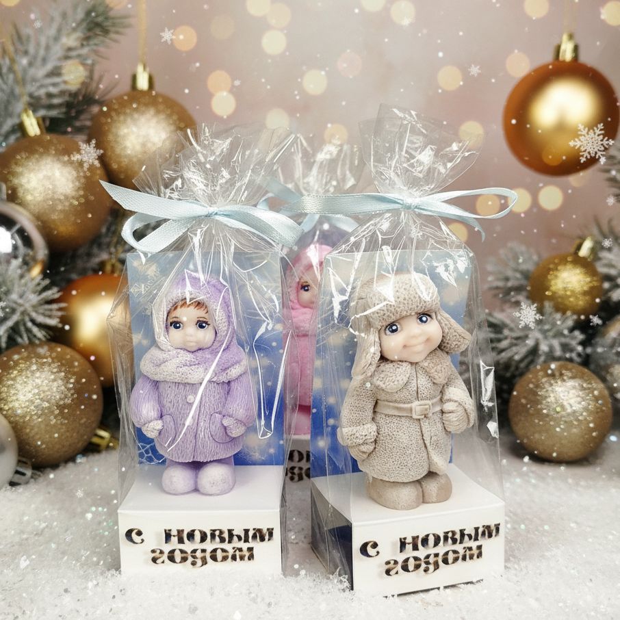 Это чистая ностальгия в миниатюре! Маленькие копии нас самих в далёком советском детстве, в тёплых шубках и шапках. Принесите немного тепла и добрых воспоминаний в свой дом или подарите тем, кто знает, что такое "ёлка до потолка"! Они реально классные. Разные варианты расцветок! Цена за 1 шт, но можно собрать красивый набор. Можно вешать на ёлку, можно ставить под ёлку или просто для украшения интерьера и создания новогодней атмосферы. Всё изготовлено из мыла!