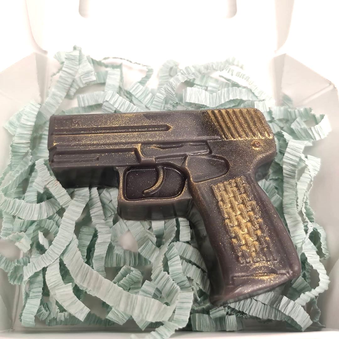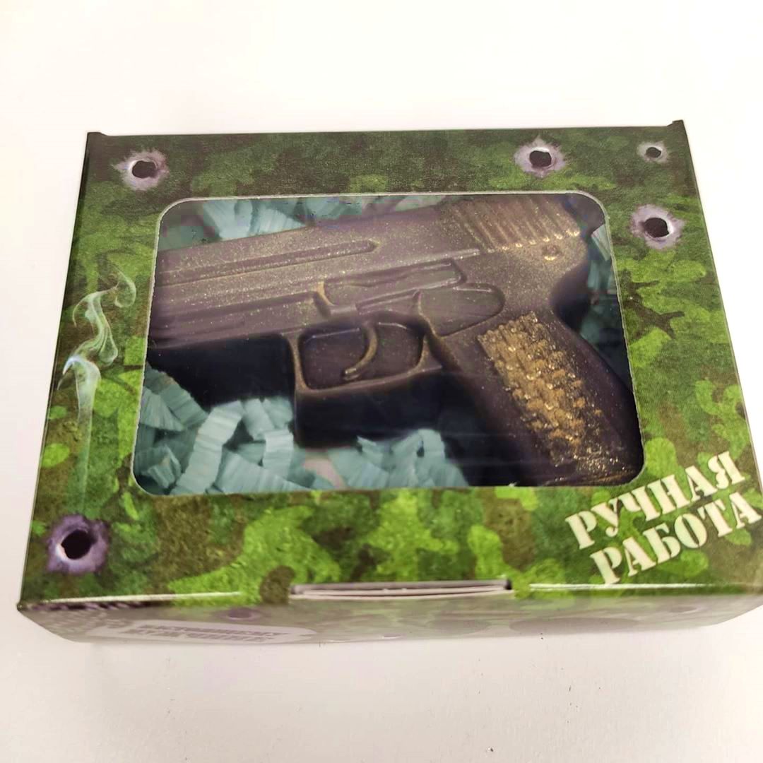 Пистолет из мыла ручной работы в тематической коробке. Отличный подарок на 23 Февраля малышам в школу или детский сад. К пистолету можно добавить например танк (это будет уже набор побольше, за 14р).