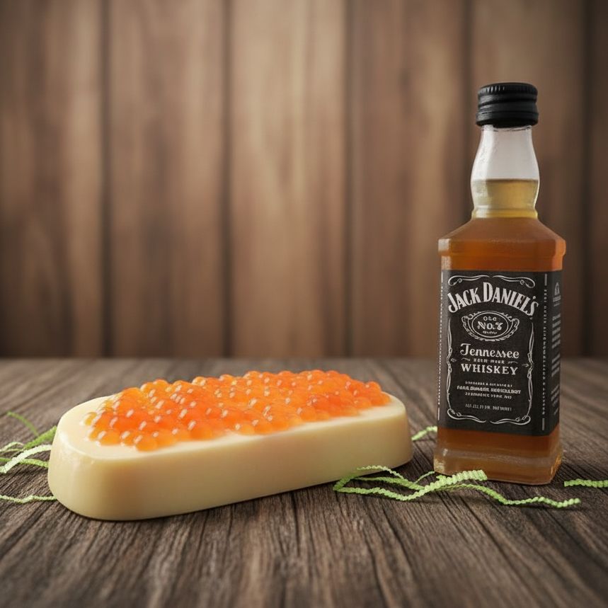 Мыльный Jack Daniels и аппетитный бутерброд с красной икрой.