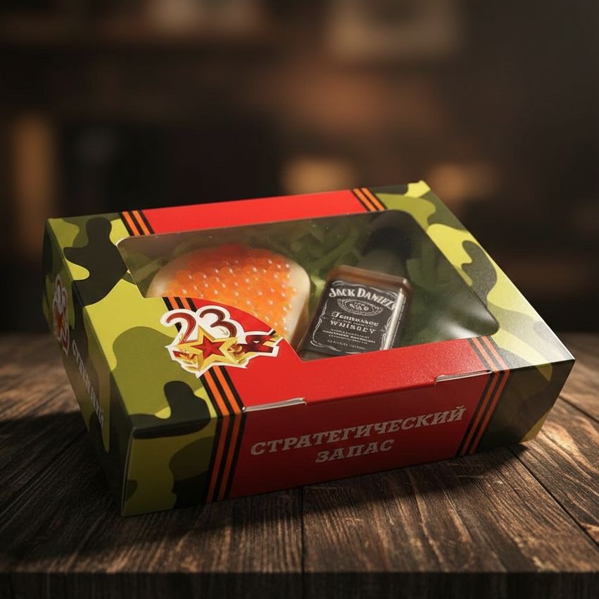 Набор к 23 Февраля. Коньяк и бутерброд с икрой.