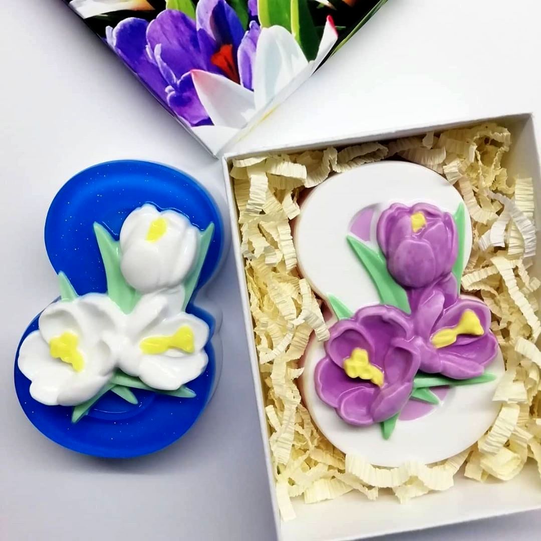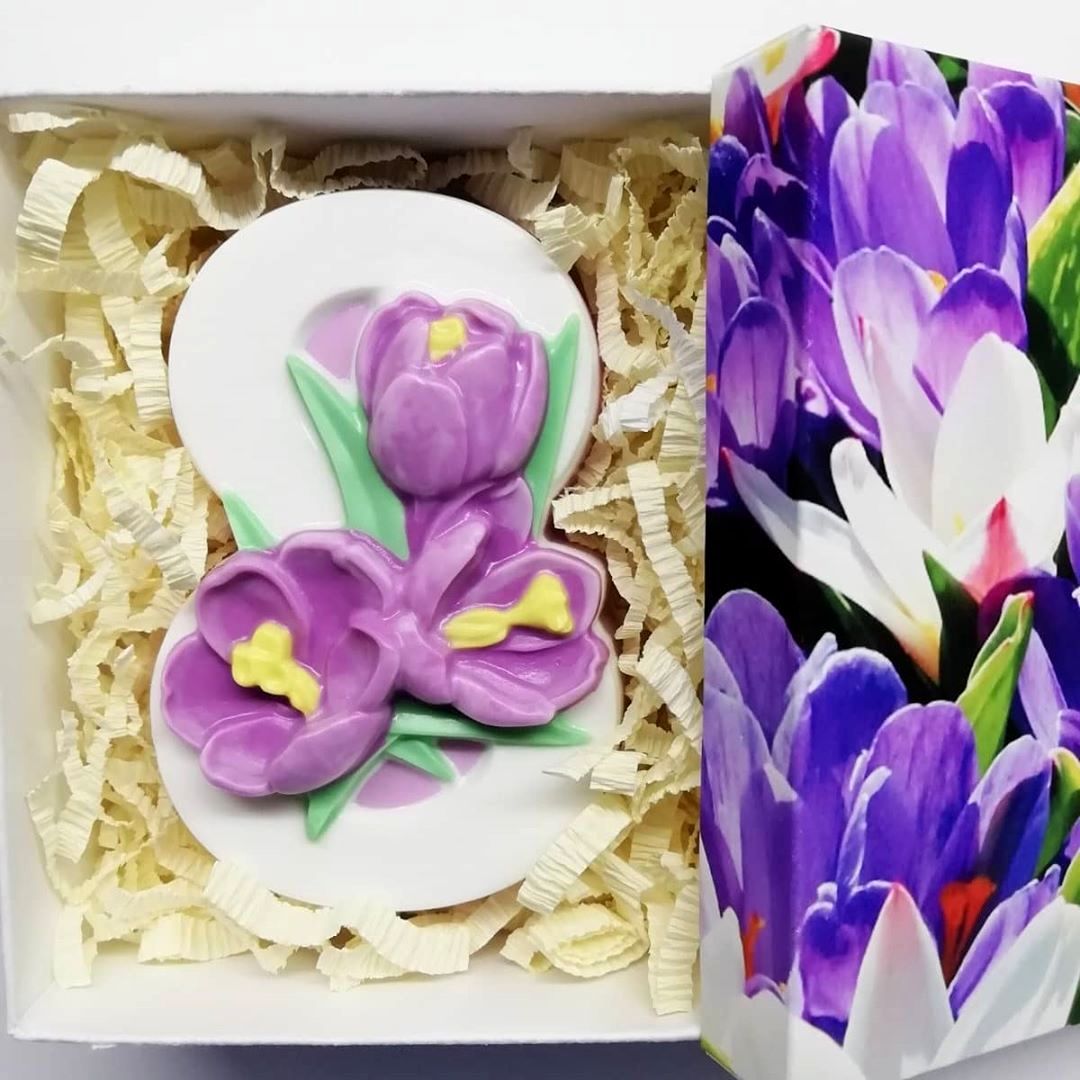 Восьмерка с крокусами, цвета можно комбинировать по желанию, упаковка в коробочку 10 x 8 см.
