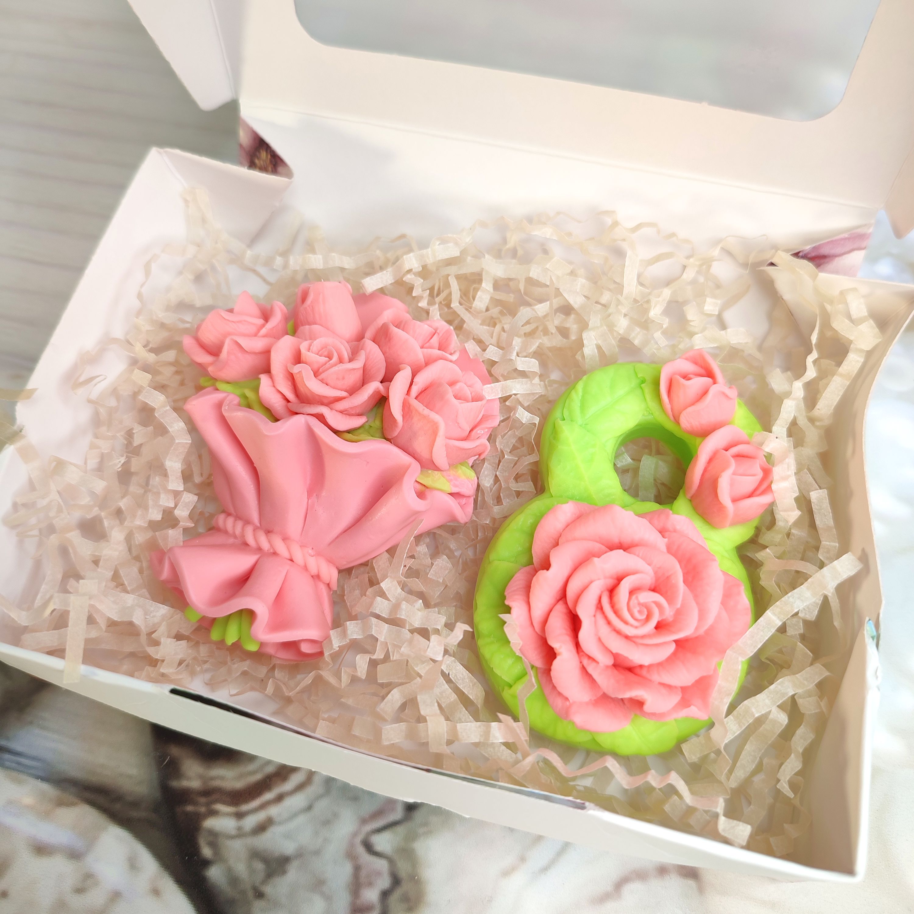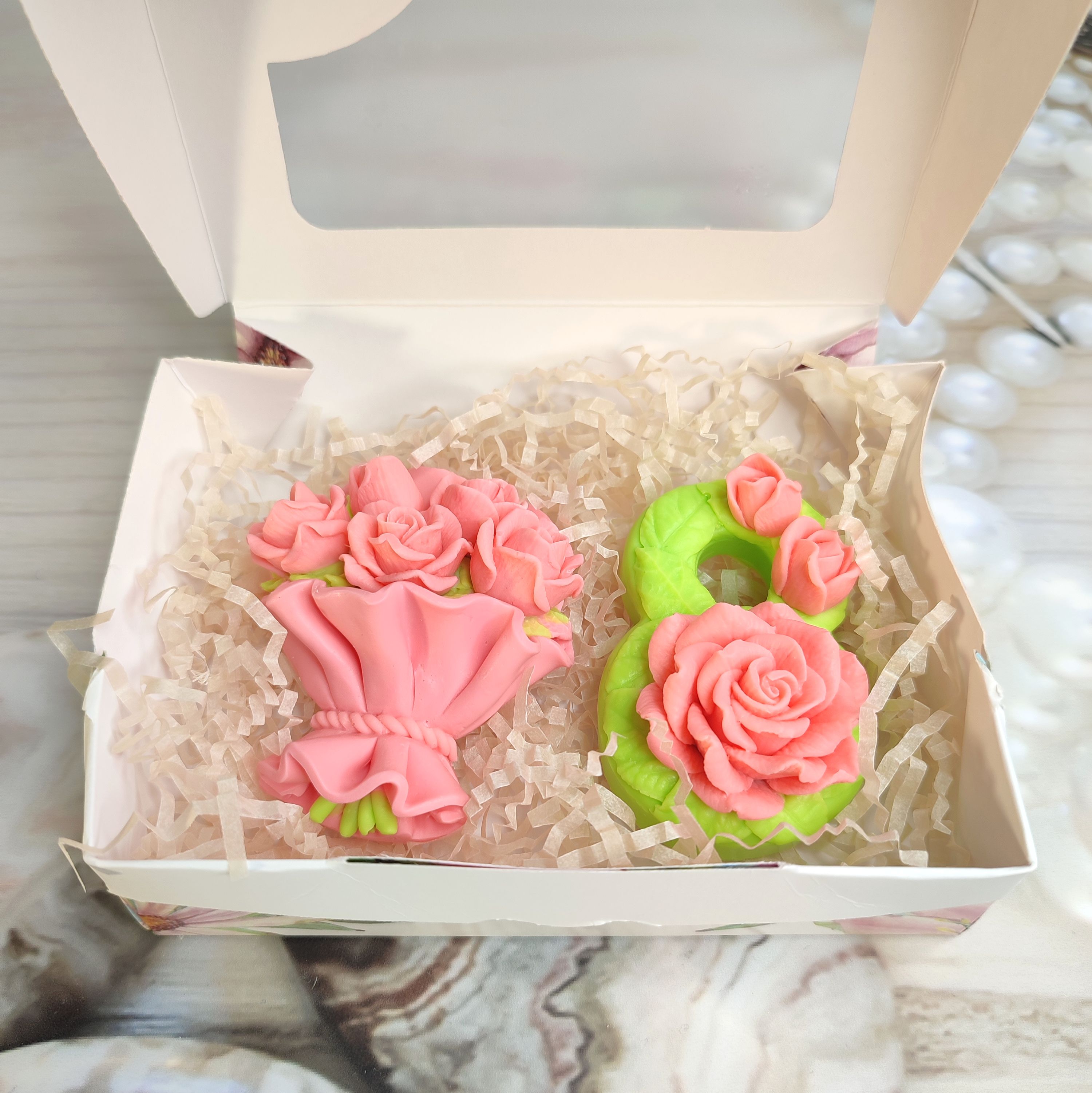 Нежные оттенки, очень красивый набор из мыла ручной работы.